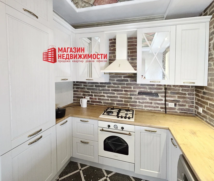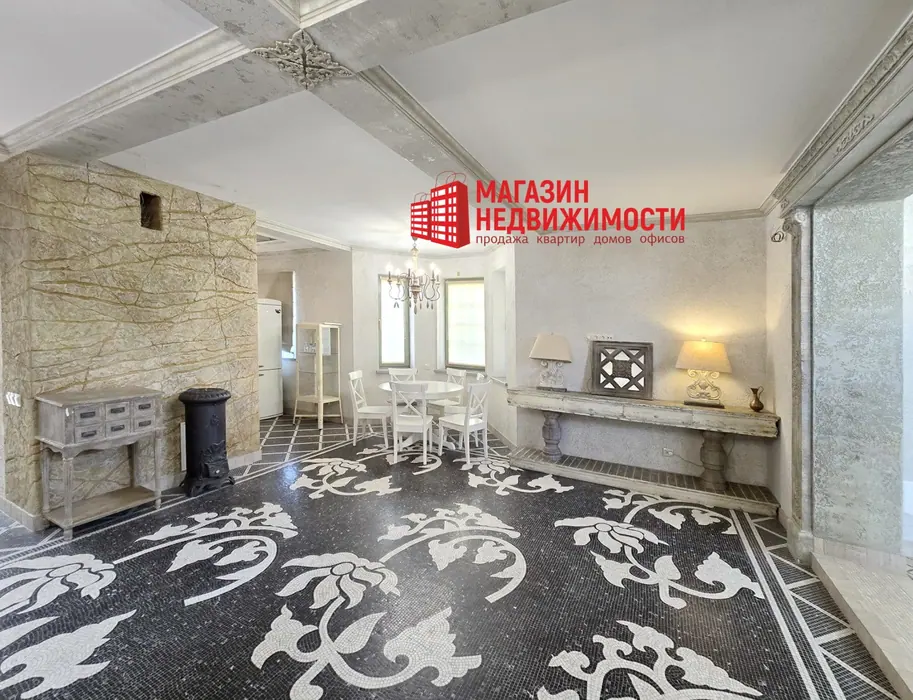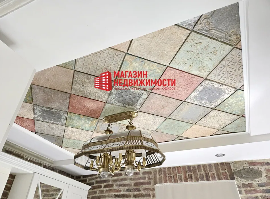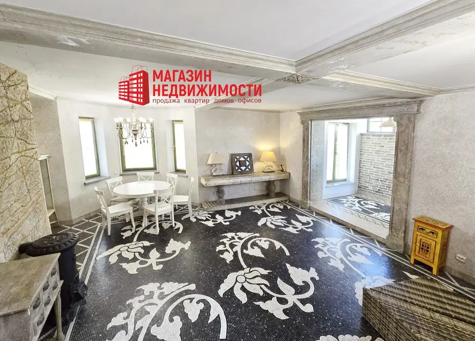На столі і падлозе кухні ды гасцёўні стварылі ўзор з керамічнай пліткі. Згодна з аб’явай, яна мае гістарычную каштоўнасць. На другі паверх можна патрапіць па драўлянай лесвіцы з металічнымі балясінамі віціеватай формы.