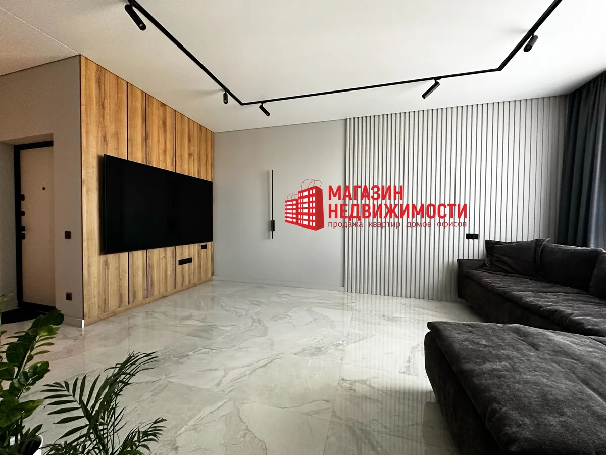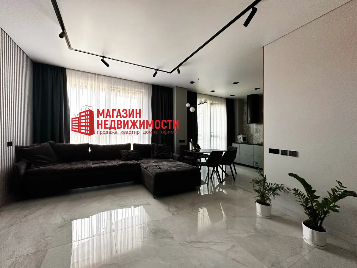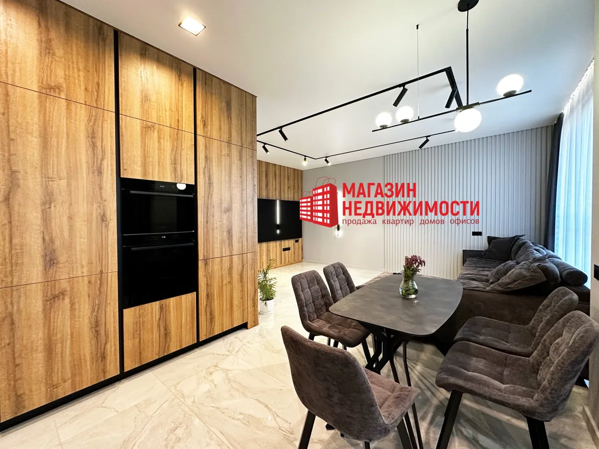 Рамонт рабілі з прадуманай планіроўкай, якаснымі матэрыяламі і тэхналогіямі, сцвярджаюць уладальнікі. На падлогу паклалі керамаграніт з падагрэвам і паркет. Кухню сумясцілі з гасцінай. Ёсць убудаваная бытавая тэхніка, два тэлевізара 86 і 55 дзюймаў, сэнсарныя выключальнікі, відэадамафоны.