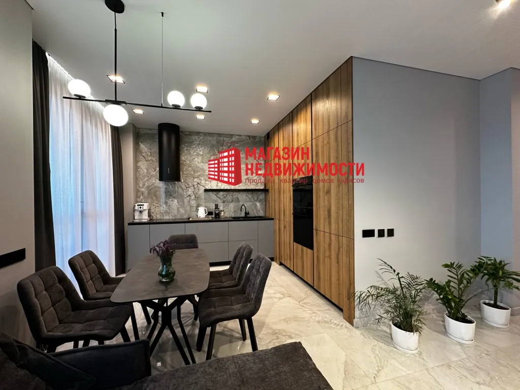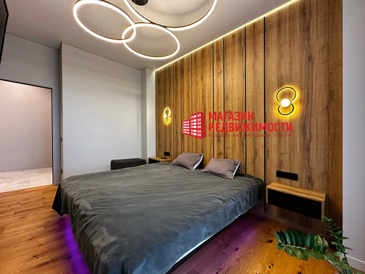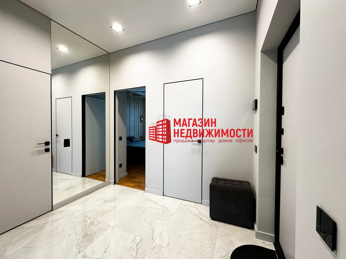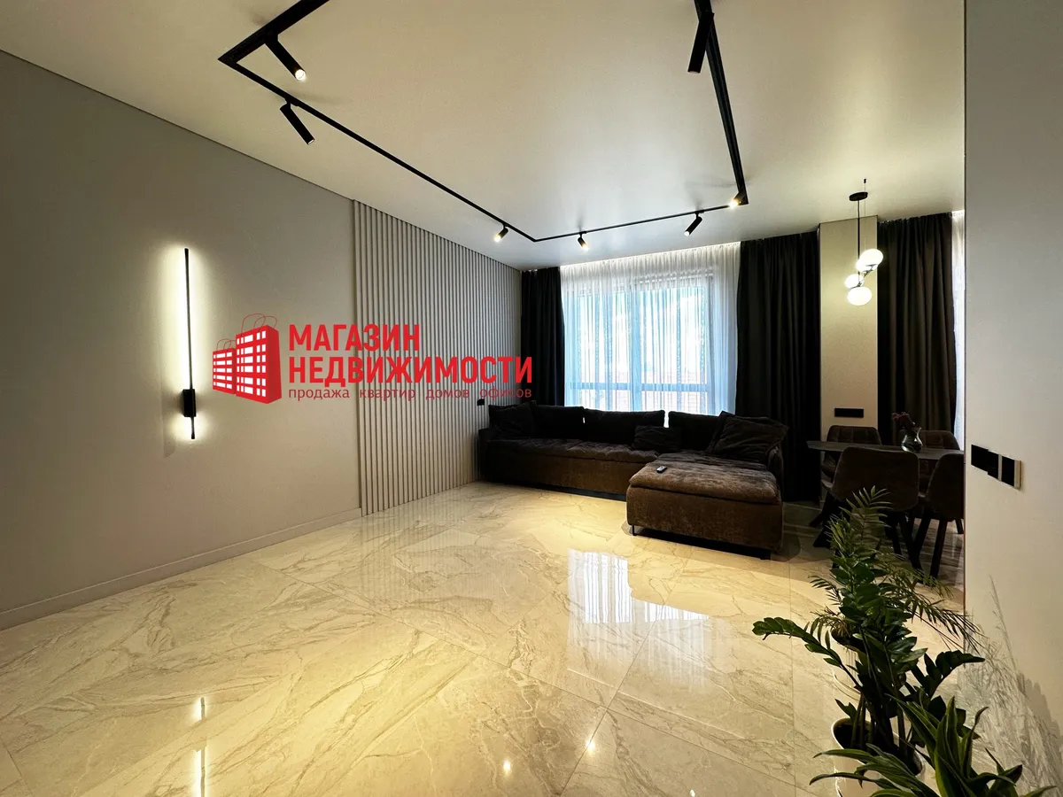 Рамонт рабілі з прадуманай планіроўкай, якаснымі матэрыяламі і тэхналогіямі, сцвярджаюць уладальнікі. На падлогу паклалі керамаграніт з падагрэвам і паркет. Кухню сумясцілі з гасцінай. Ёсць убудаваная бытавая тэхніка, два тэлевізара 86 і 55 дзюймаў, сэнсарныя выключальнікі, відэадамафоны.