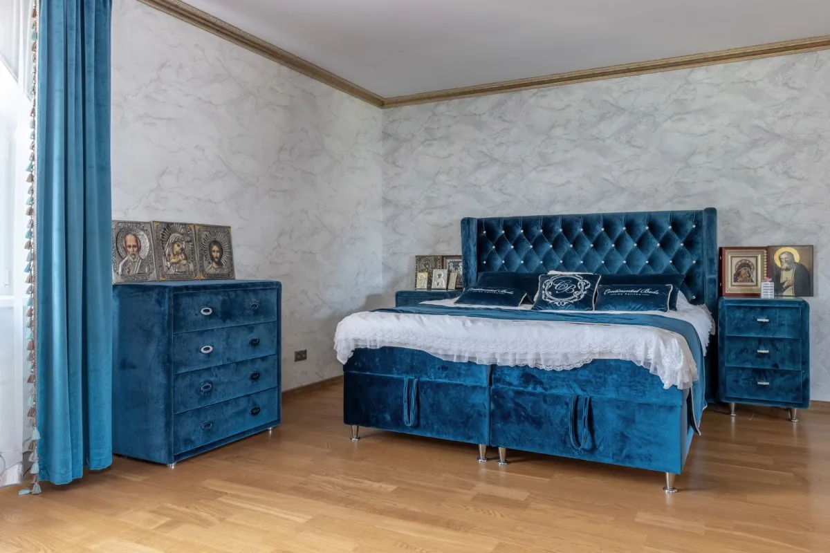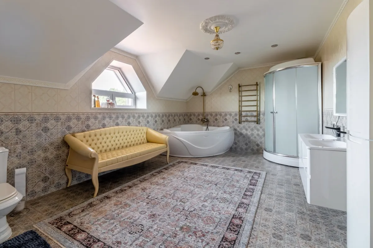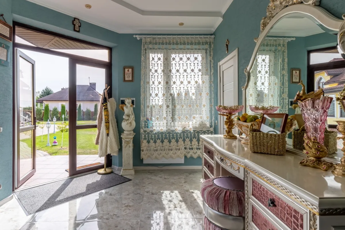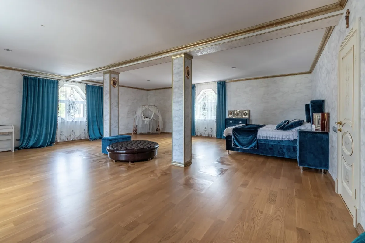 У доме чатыры жылыя пакоі, прасторная кухня, функцыянальны ванны пакой, трэнажорная зала. У доме ўстаноўлена італьянская сантэхніка, пакоі абстаўлены італьянскай мэбляй з масіву і тэхнікай ад сусветных брэндаў.