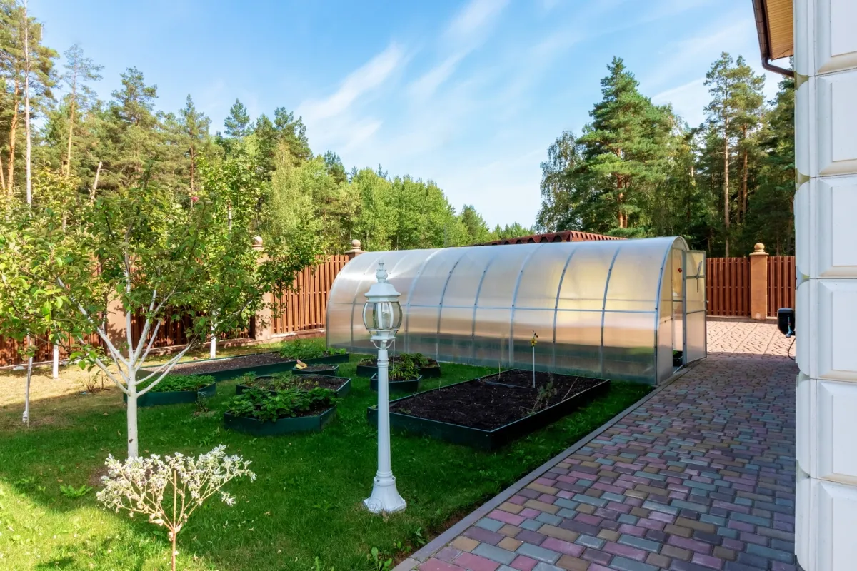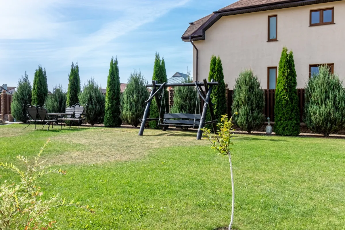 У добраўпарадкаванні ўчастка выкарыстаны дэкаратыўныя і пладовыя дрэвы, устаноўлена прадуманая сістэма паліву, арганізаваны зоны адпачынку з альтанкай і арэлямі.