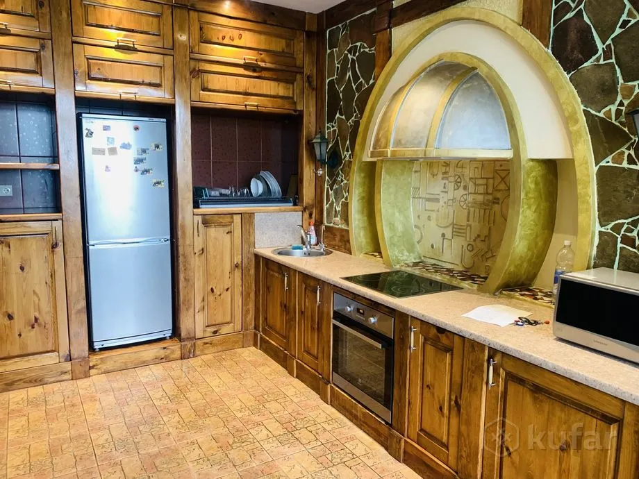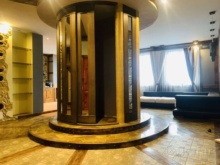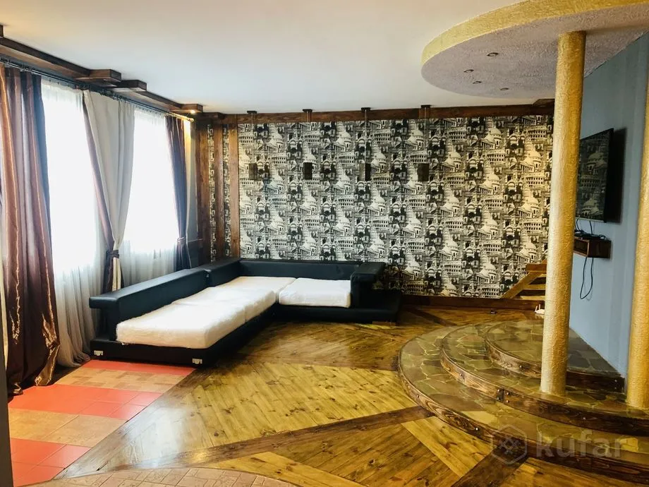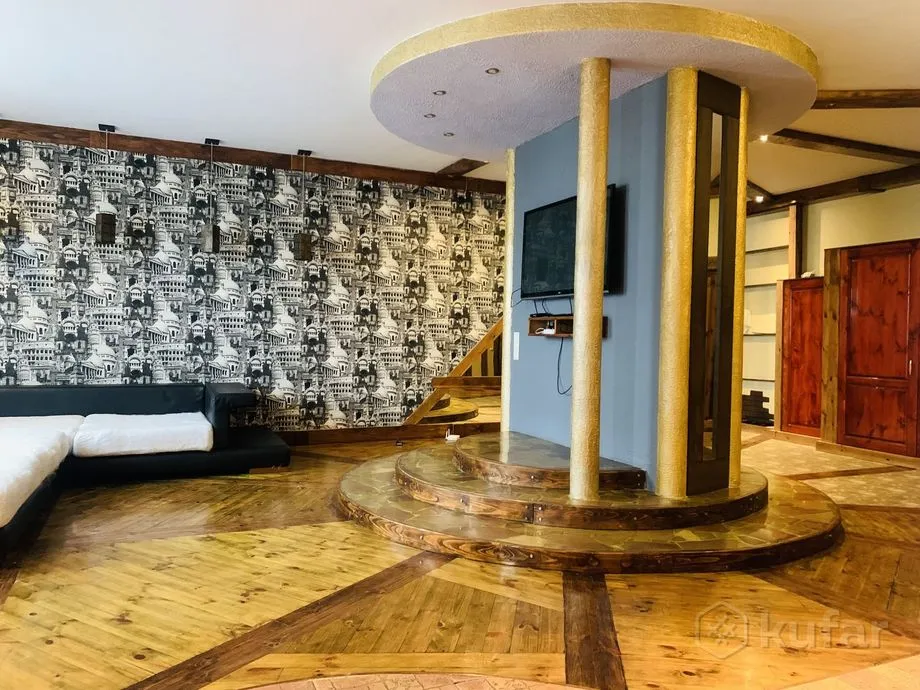 Прадаецца кватэра ў маналітным доме насупраць аўтавакзала. Рамонт у ёй незвычайны: спалучаюцца элементы мадэрна і рустыкальнага стылю, а цэнтр гасцінай займае круглая калона-шафа.