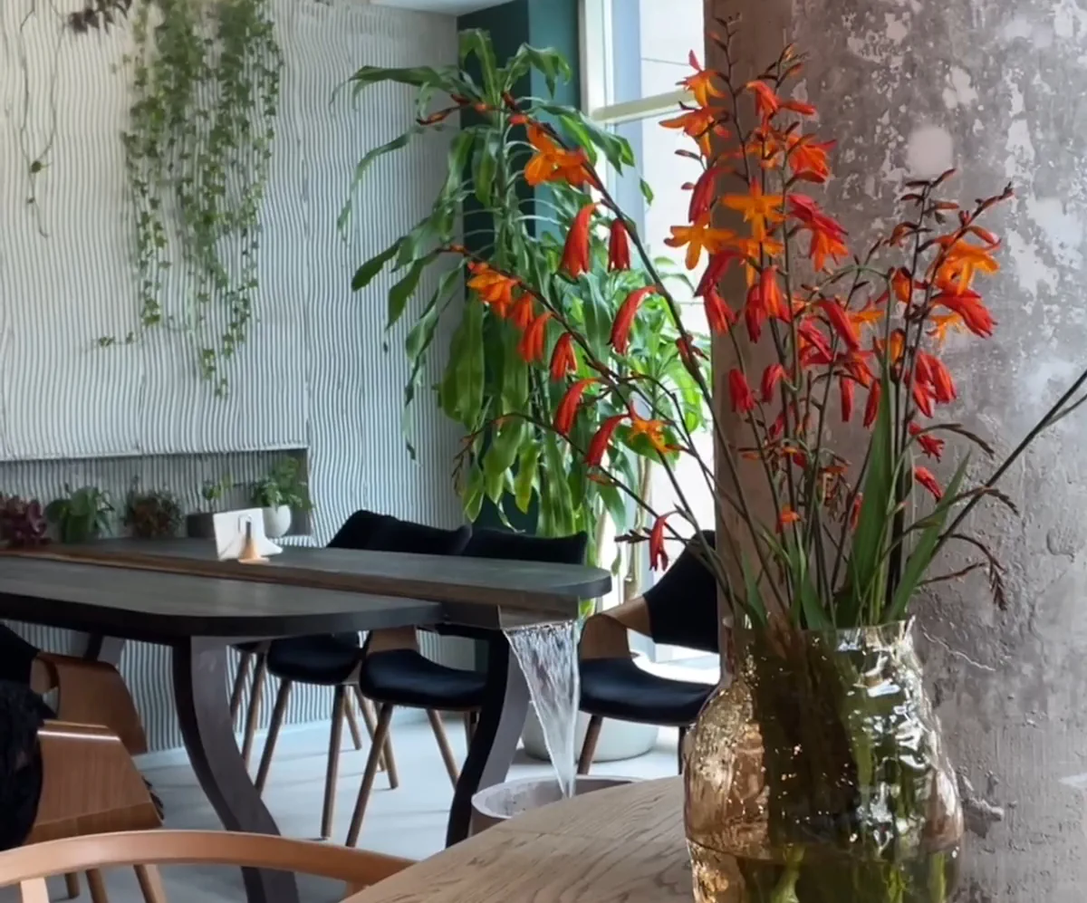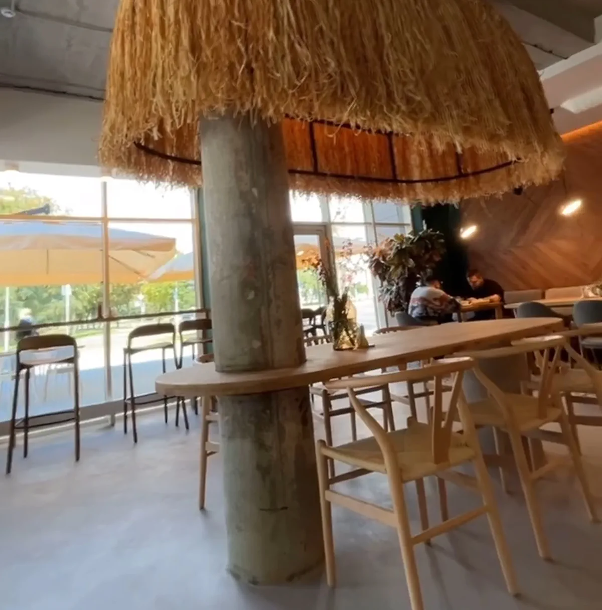 Інтэр’ер «Пышки» вытрыманы ў светлых адценнях, ёсць там і прыродныя элементы: вялікія фікусы і імправізаваны вадаспад, які цячэ праз стол. Ёсць вялікая барная стойка, а на вуліцы — летняя тэраса.