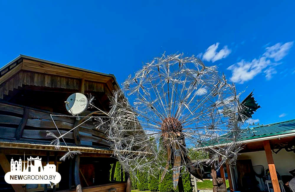 Эйфелева вежа — не адзіная пабудова, якую ўзвёў Анатоль. У яго двары таксама ёсць металічны дзьмухавец. На тое, каб зрабіць кветку, у мужчыны сышло 1,5 кіламетры дроту.