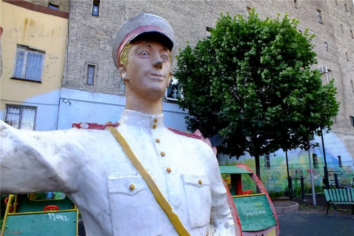 Помнікі гэтаму персанажу ёсць у розных гарадах Расіі – у Маскве, Самары, Санкт-Пецярбургу, Пракоп’еўску (Кемераўская вобласць), Раменскім (Маскоўская вобласць), Ніжнім Ноўгарадзе, Усолле-Сібірскім. У асноўным гэта постаці вышынёй у некалькі метраў. Вылучаецца з шэрагу помнік у Ніжнім Ноўгарадзе. Фігура стаіць на пастаменце з вадаправодных труб і быццам бы вылеплена з пластыліну. Мясцовыя жыхары нават называлі яго «пярэваратнем у пагонах» і “падарункам на Хэлоўін”.
