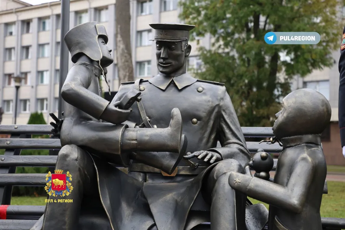Скульптуру адкрылі да 80-гадовага юбілею гродзенскай міліцыі. У цырымоніі адкрыцця ўдзельнічалі міністр МУС Іван Кубракоў, кіраўнік Гродзенскай вобласці Уладзімір Каранік і, мяркуючы па форме, навучэнцы кадэцкіх класаў.