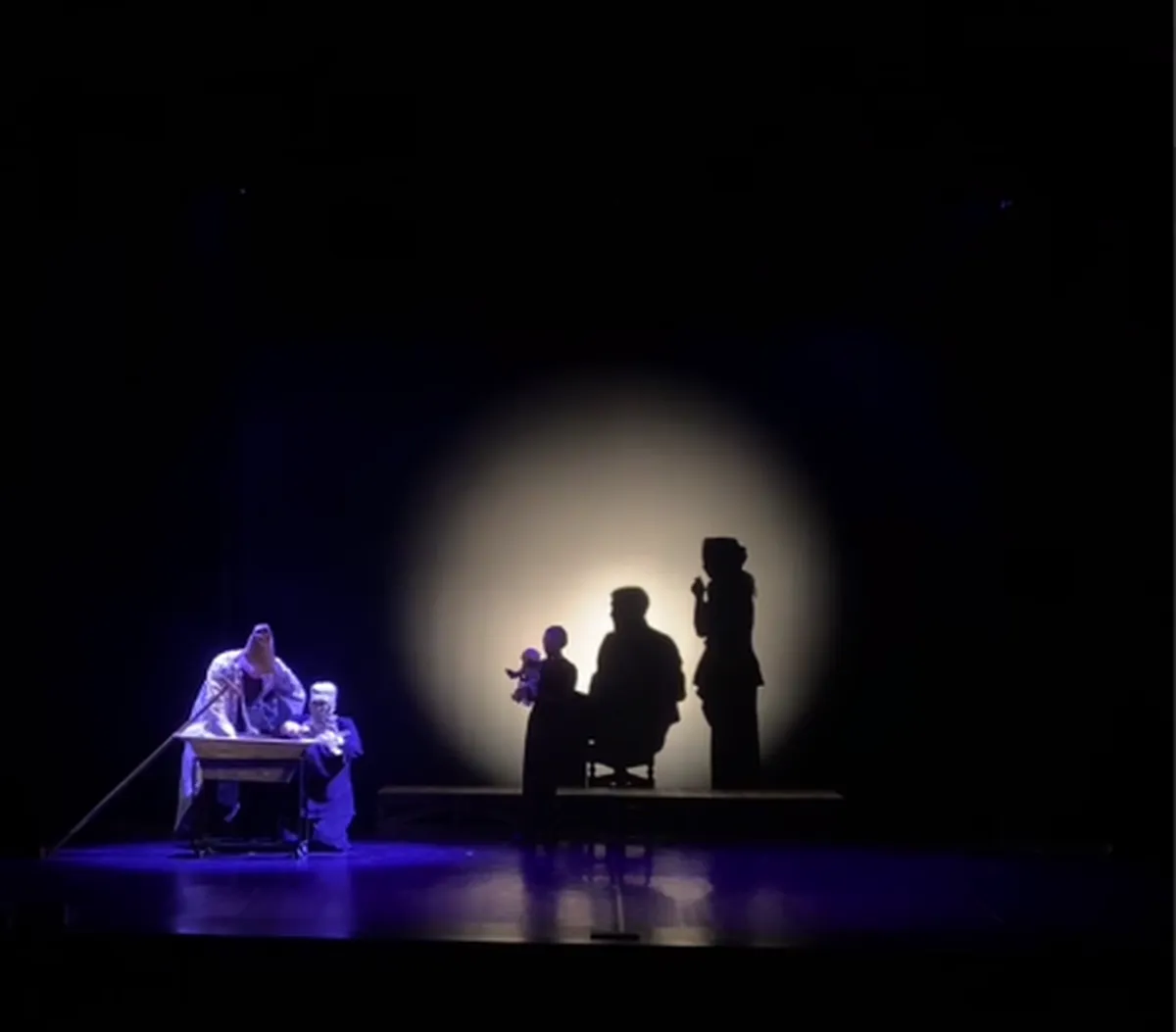 У пастаноўцы вялікае значэнне маюць цені на палатне за галоўным героем. Шэрыя выявы сімвалізуюць мінулае, якое паўстае ў ягонай памяці.