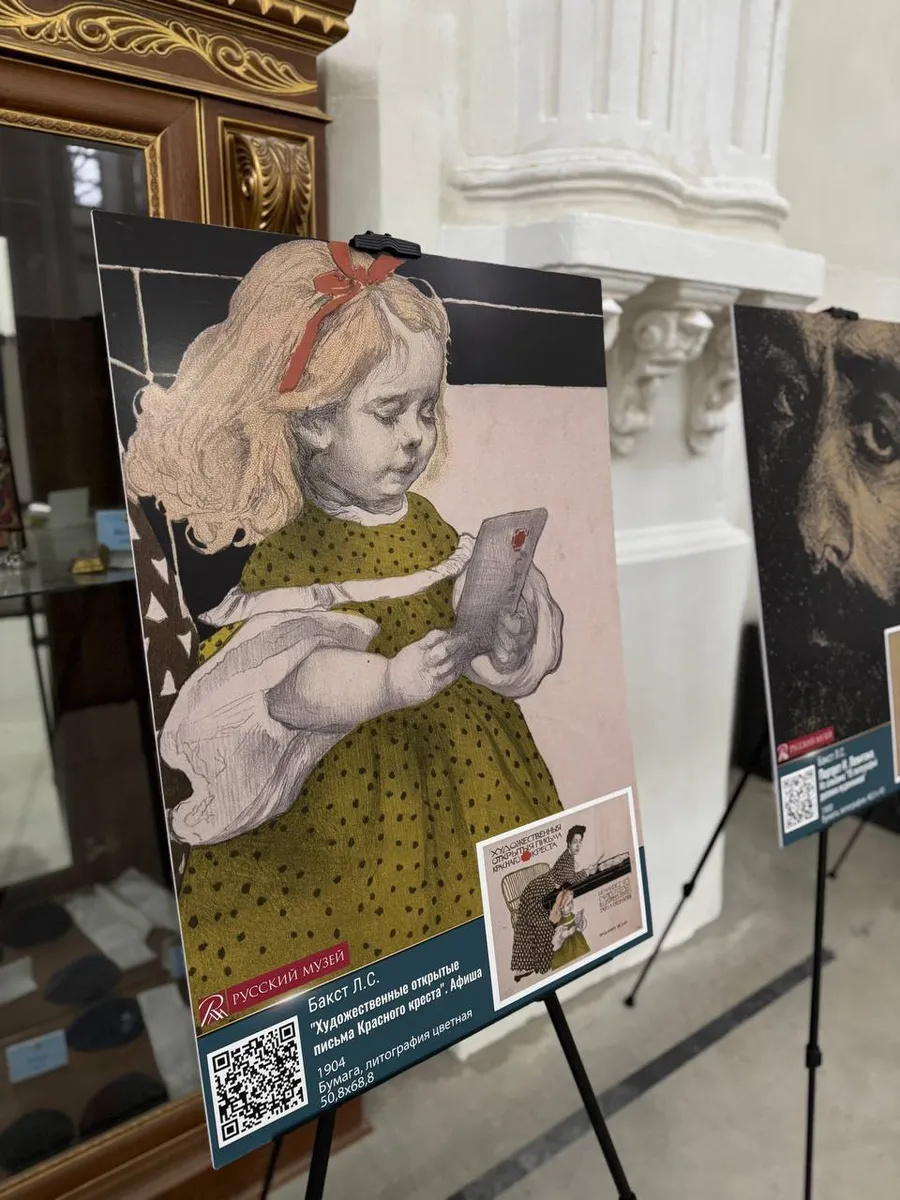 У экспазіцыю ўвайшлі копіі работ Бакста, якія зараз знаходзяцца ў калекцыі Рускага музея. Арганізатары называюць выставу «мабільнай» — арыгінальных малюнкаў Бакста наведвальнікі не ўбачаць. Але, адсканаваўшы QR-кады, трапяць на віртуальны партал Рускага музея.