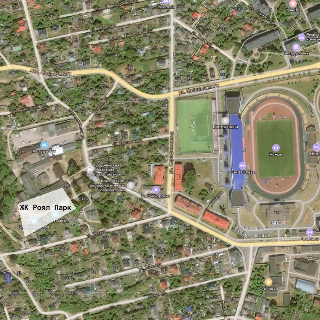 Будаўніцтва комплексу “Роял Парк” ідзе на вуліцы Камунальнай, недалёка ад стадыёна “Нёман” і Лядовага палаца. Дамы будуць у крокавай дасяжнасці ад галоўных славутасцяў Гродна. Тэрыторыя будзе закрытай, агулам плануецца будаўніцтва 30 кватэр. Пакуль кошт квадрата ў таунхаусах складае $1250.