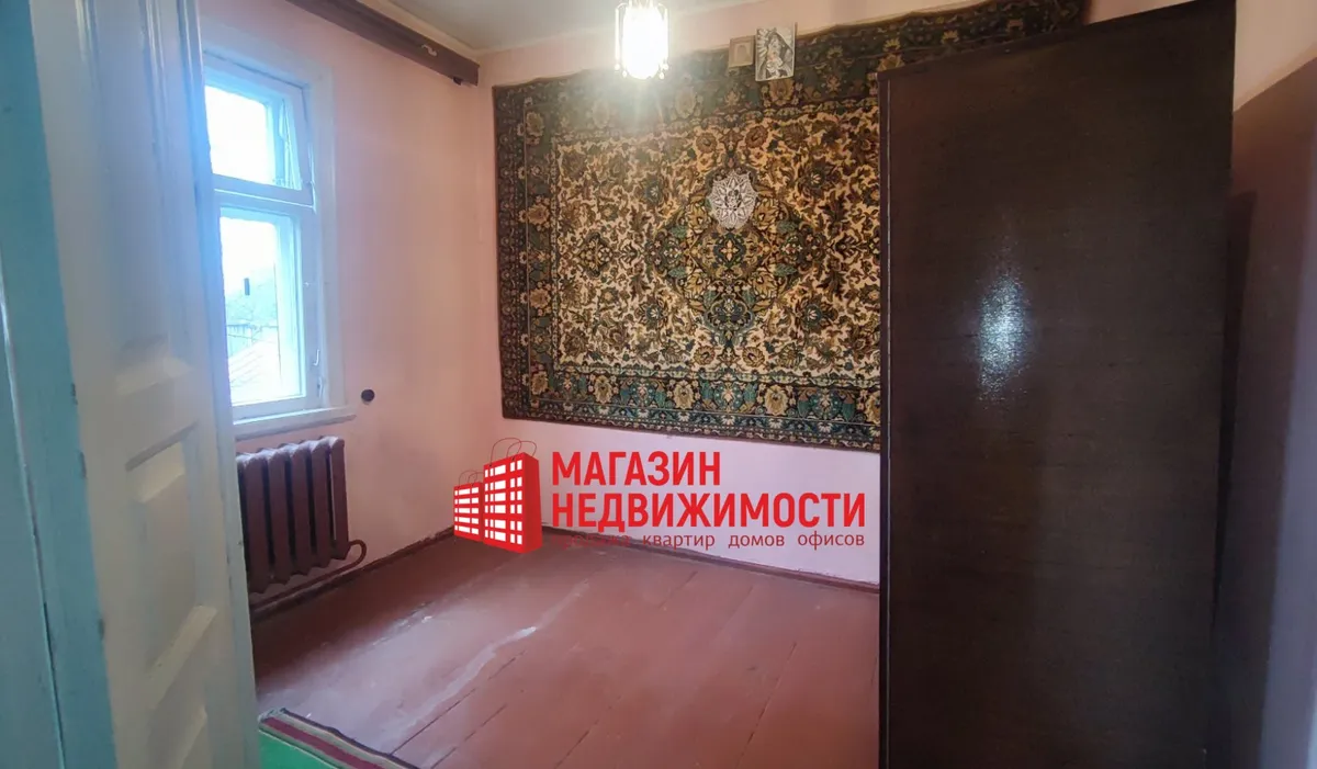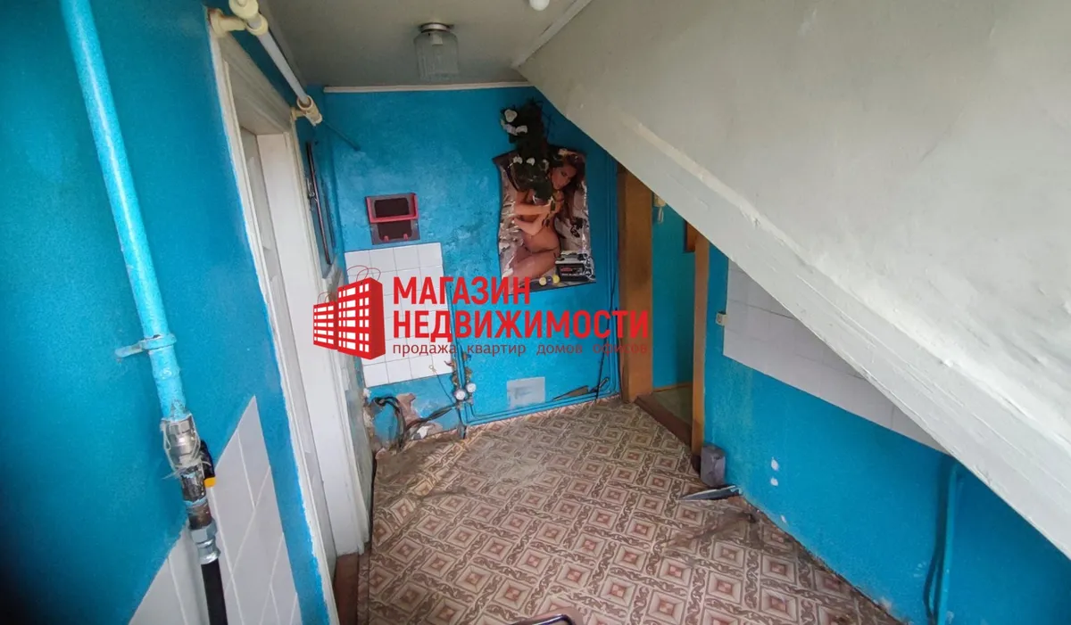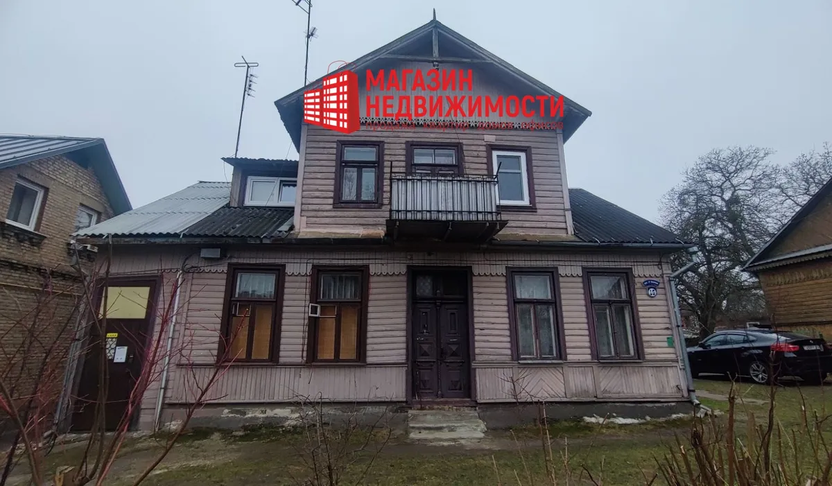 Двухпакаёвая кватэра займае другі паверх драўлянага дома – уласна, мезанін, надбудову над сярэдняй часткай будынка. Туды вядуць дыхтоўныя ўнутраныя сходы з фігурнымі балясінамі пад парэнчамі. Ёсць балкон, санвузел паасобны, але вельмі маленькі. Кватэра невялікая: агульная плошча 28, 2 кв. м, з іх 6 м займае кухня. Трубы на кухні заменены, а газавай калонкі няма – падобна, што ацяпленне цэнтральнае. За домам ёсць зона для адпачынку.