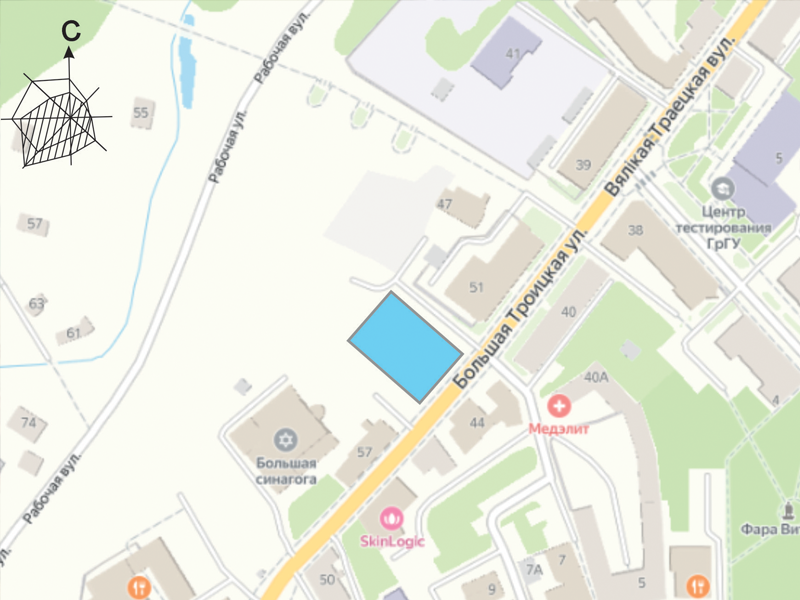 Тры ўчасткі на вуліцы Вялікая Траецкая хочуць выставіць на аўкцыён. Адзін з іх знаходзіцца паміж будынкамі № 57 і № 51, другі – за сінагогай, трэці – за домам № 51. Тут прапануецца пабудаваць аб’екты грамадскага прызначэння. Напрыклад, клініку, установу навукі і культуры, краму ці гандлёвы цэнтр, кропку грамадскага харчавання або аб’ект бытавога абслугоўвання.
