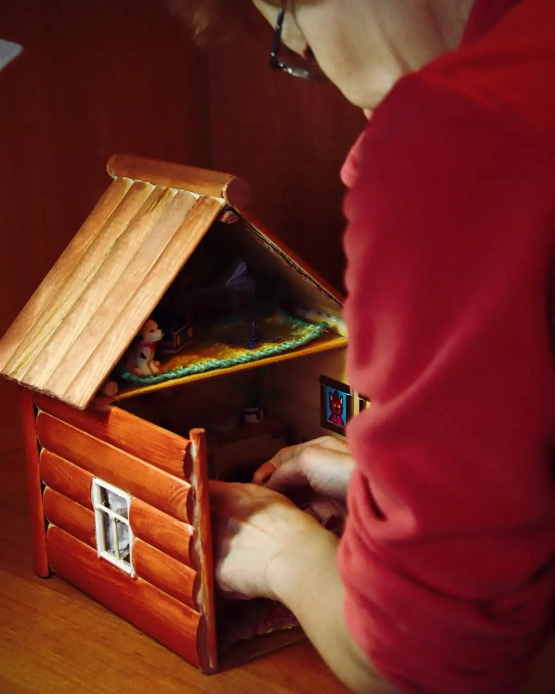 «Праз столькі гадоў выпадкова мы знайшлі сябе ў стварэнні мініяцюрных пакояў. Кожны дзень (а часам і ноч) пасля працы дома мы садзімся за стварэнне мініяцюрных пакояў, але пакуль толькі для знаёмых. А ўсё пачалося з таго, што мы вырашылі зрабіць асаблівы падарунак унуку – хатку з кучай цікавых дэталяў для гульняў.