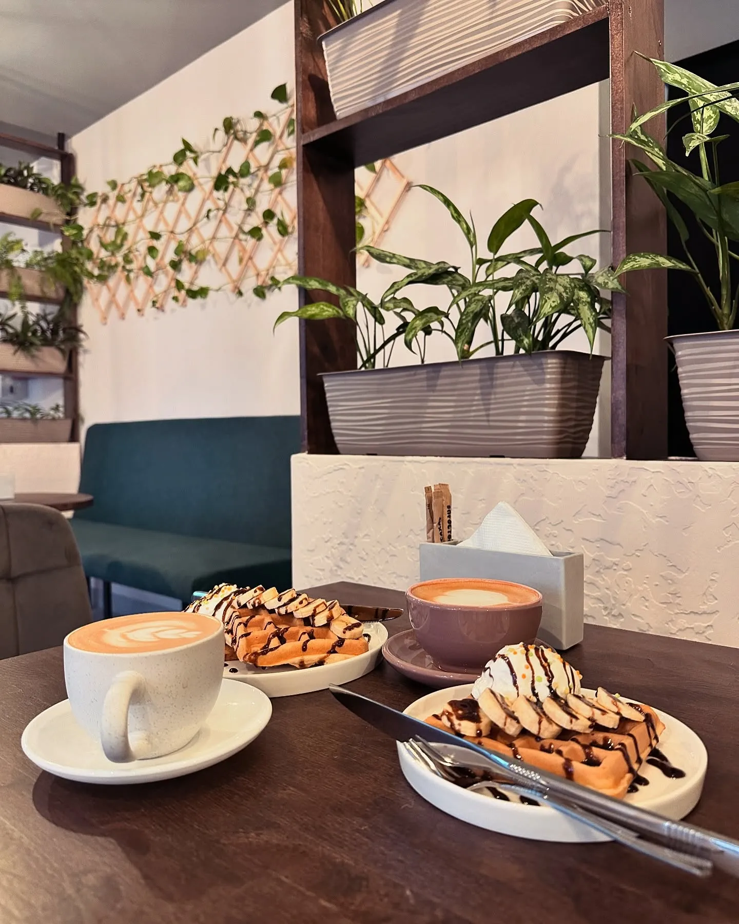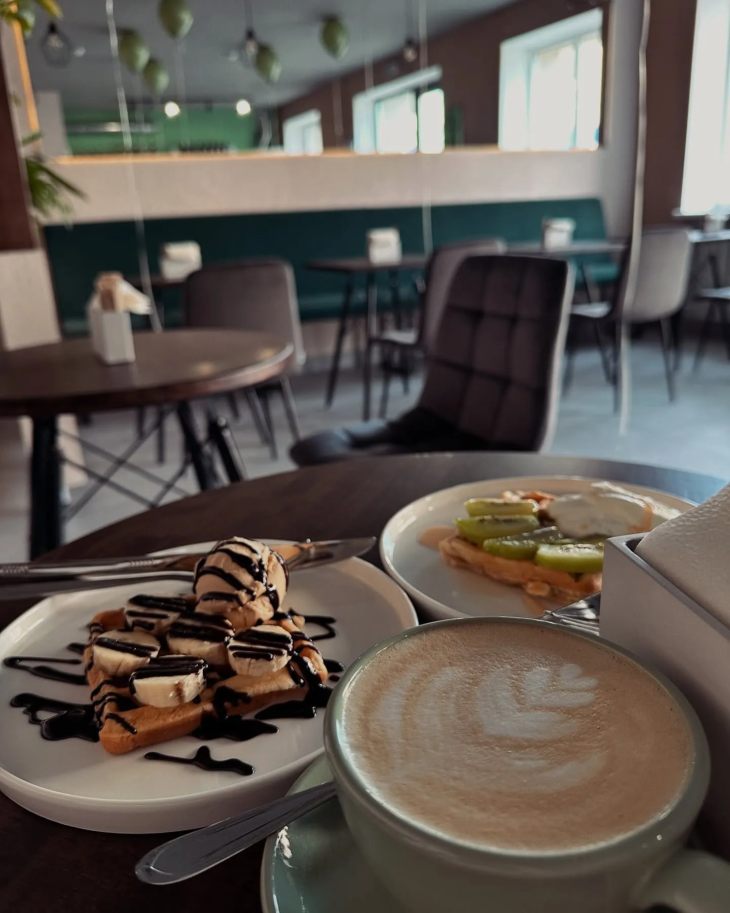 У меню – кава, дэсерты, венскія вафлі і круасаны.