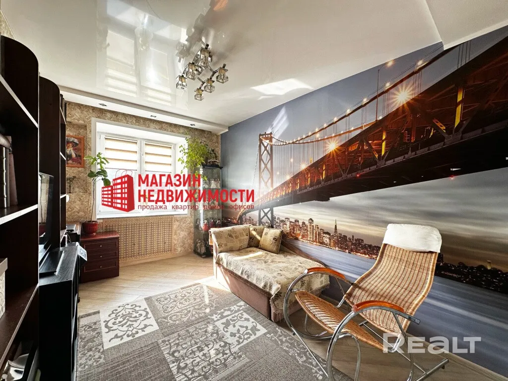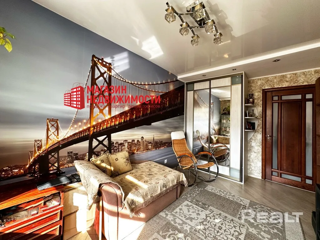 У Гродне выставілі на продаж трохпакаёвую кватэру на Парахавым завулку, 3. На адной сцяне – фоташпалеры з мостам Сан-Францыска-Окленд Бэй-Брыдж, на другой – Эйфелева вежа.