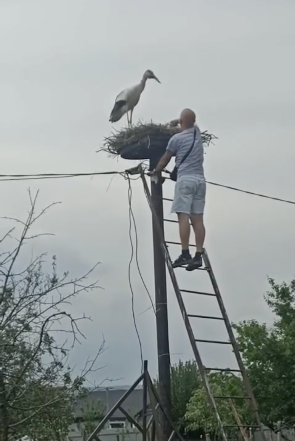 Ролік з выратаваннем птушкі апублікавалі адразу некалькі Telegram-каналаў Гродна і вобласці. На кадрах бачна, як мужчына, стоячы на лесвіцы, падкладвае ў гняздо бусляня. Відэа суправадзілі аднолькавым подпісам: «У Беларусі мужчына ўбачыў, што з гнязда бусла выпала птушаня і ён яго вярнуў на месца. Толькі паглядзіце на рэакцыю мамы-бусла».