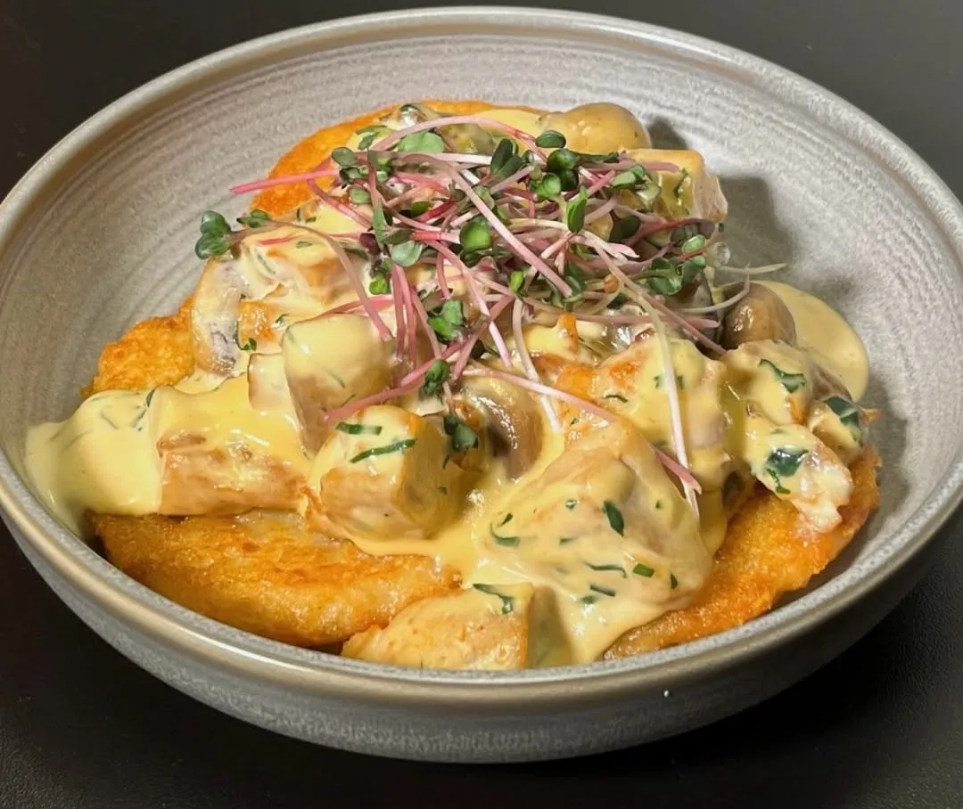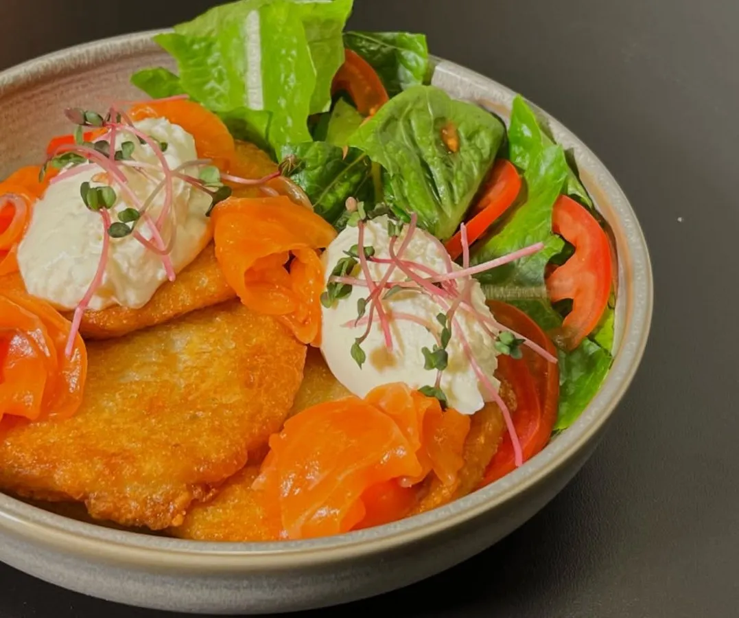 З ежы прапануюць антыпасты (33 руб.), салаты (15-22 руб.), сэндвічы (15-17 руб.), фры з ялавічынай або курыцай, хашбраўны (страва, падобная на дранікі) з фарэллю, яечняй і беконам, курыцай і грыбамі. Сезонная прапанова – халаднік з бульбай-фры за 11 руб.