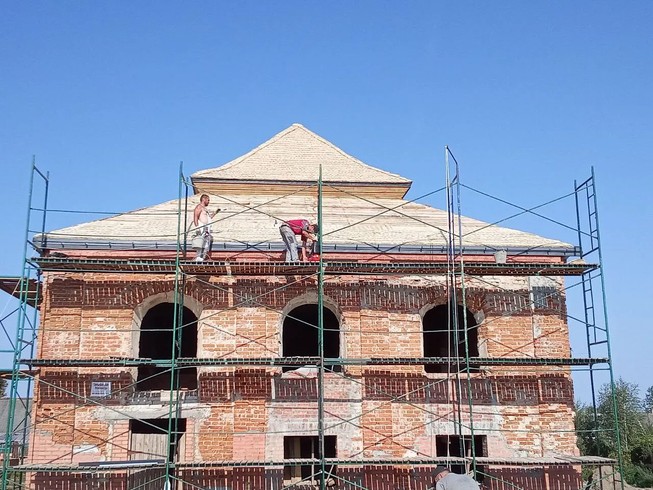 Зараз рэстаўратары дапрацоўваюць заходні схіл, а пасля зоймуцца паўднёвым. Гэта апошні крок ў аднаўленні даху сінагогі, напісалі на Facebook-старонцы маёнтку.