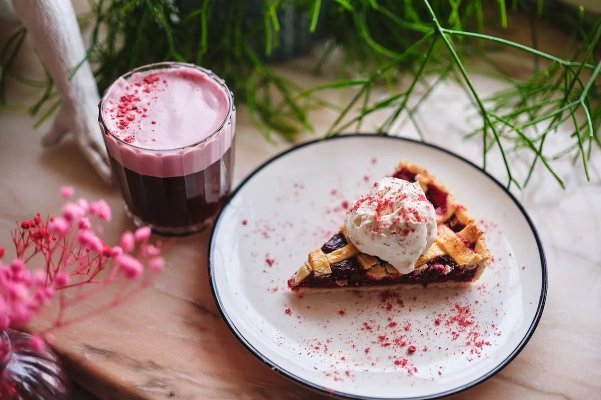 У кавярні на Замкавай, 12а гасцям пададуць амерыкана з вішнёва-какосавай пенай і вішнёвы пірог, дапоўнены шарыкам хатняга сырнага марожанага.