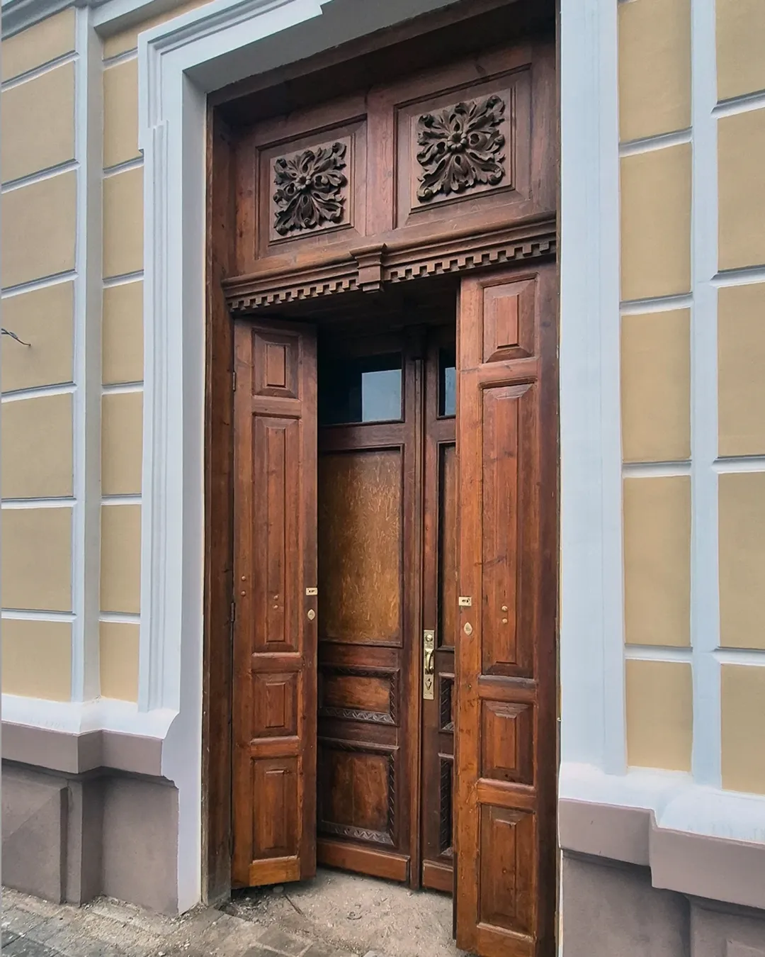 UPD. З 2023 года будынак рэстаўруюць пад апарт-гатэль. Прыватны ўласнік вырашыў захаваць арыгінальныя дзверы і аднавіць іх пачатковы выгляд. Цяпер, па стане на снежань 2025, яны выглядаюць як на фота ніжэй.