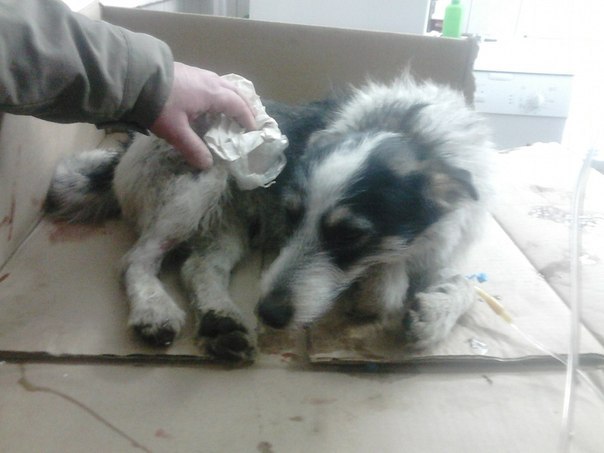 Аўчарку па мянушцы Рэд знайшлі каля Ласасянкі і патэлефанавалі сям’і Красільнікавых. Нягледзячы на жудасныя гнойныя раны і знямогласць, ён кусаўся і людзі баяліся да яго падысці.