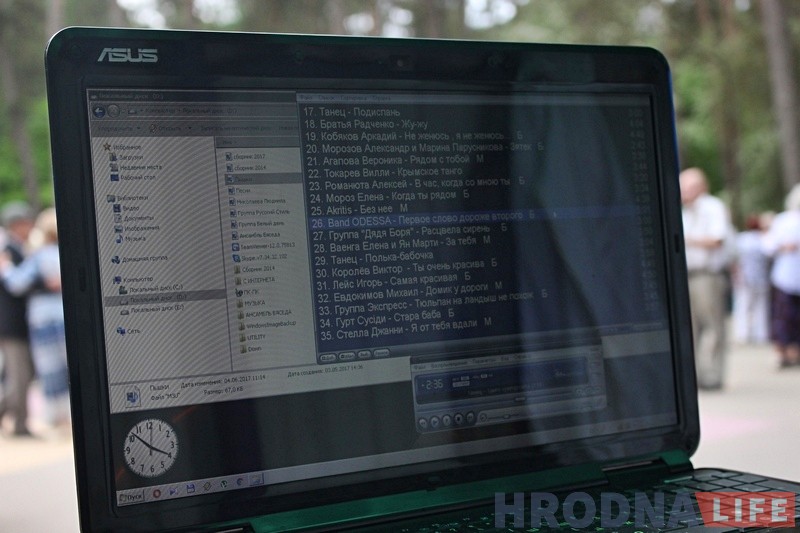 “У гэтым годзе сезон танцаў адкрылі 7-9 мая, і гэтая праграма будзе працягвацца ў нас на працягу чатырох месяцаў, – распавядае Мікалай. – На нашай пляцоўцы танчаць розныя танцы: вальс, польку, танга, факстрот, кракавяк ды іншыя. Выкарыстоўваем песні, якія на слыху, і сучасныя у тым ліку, але абавязкова прыдатныя пад тэмп нашых наведвальнікаў. Гэта, вядома, не тое, што слухае цяпер моладзь, але песні даволі папулярныя. Я тут іграю даўно і ўсіх ужо ведаю, і мяне ведаюць. то іншы раз падыходзяць і замаўляюць песні. Я просьбы наведвальнікаў ніколі не пакідаю без увагі – усё стаўлю бясплатна. Калі песня, якую просяць, маецца ў маім рэпертуары, то стаўлю яе ў гэты ж дзень, калі яе няма, то шукаю напрацягу тыдня. Магу сказаць, што наведвальнікі чакаюць танцаў з нецярпеннем, каб у чарговы раз прыйсці адпачыць. Для іх тут на танцпляцоўцы свята і я стараюся яго зрабіць яшчэ ярчэй. Зараду бадзёрасці, атрыманага на танцах, ім хапае на цэлы тыдзень“.