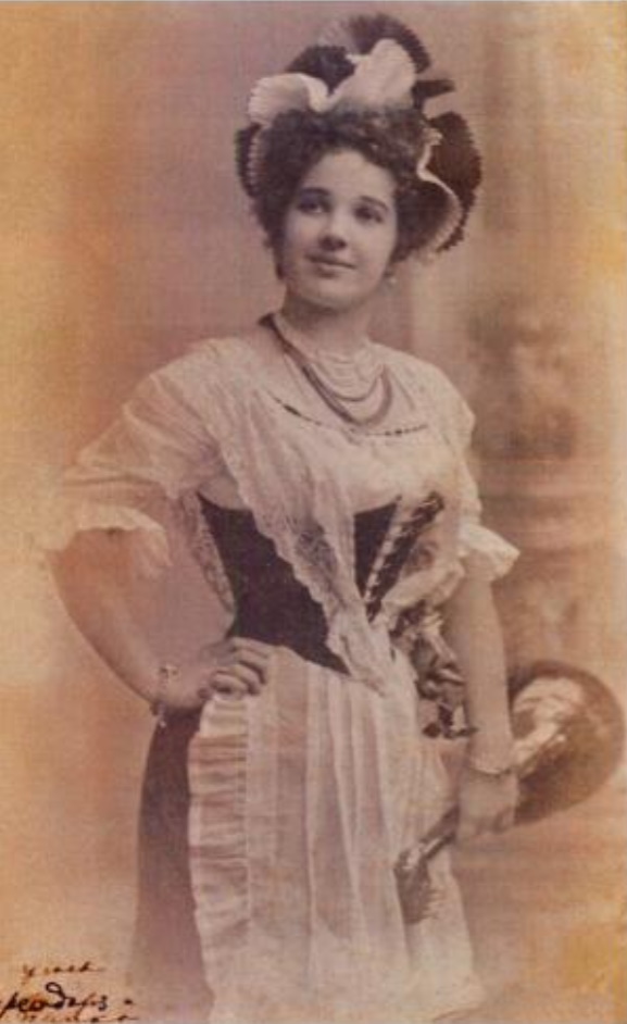 Нарадзілася будучая фотамадэль 7 мая 1876 г. у Санкт-Пецярбургу. Яе бацька Яўфім Грачоў быў вядомым селекцыянерам. Ён вынайшаў некаторыя сарты бульбы, капусты, морквы, буракоў, кукурузы і іншай гародніны. Грачоў быў сябрам Парыжскай акадэміі сельскай гаспадаркі, прамысловасці і гандлю. Апроч таго, ён з’яўляўся спадчыным ганаровым грамадзянінам Санкт-Пецярбурга. Сям’я Грачовых шмат вандравала. Часта яны бывалі ў Парыжы, які з’яўляўся адным з любімых іх гарадоў.