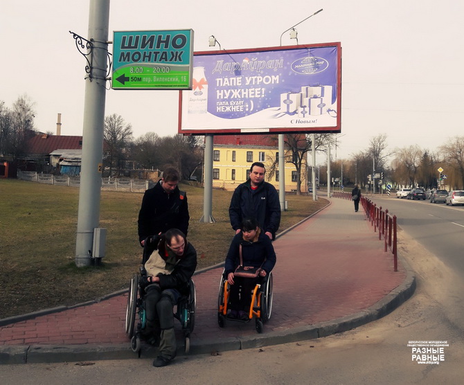 Магчыма, падобная думка так ніколі і не наведала б нашы галовы, але мы былі даўно знаёмыя адзін з адным, часта праводзілі час разам і выдатна ўяўлялі сабе, колькі цяжкасцяў неабходна пераадольваць на вуліцах горада як людзям, чыя мабільнасць чымсьці абмежаваная, так і іх сябрам, знаёмым, ды і проста выпадковым памочнікам.