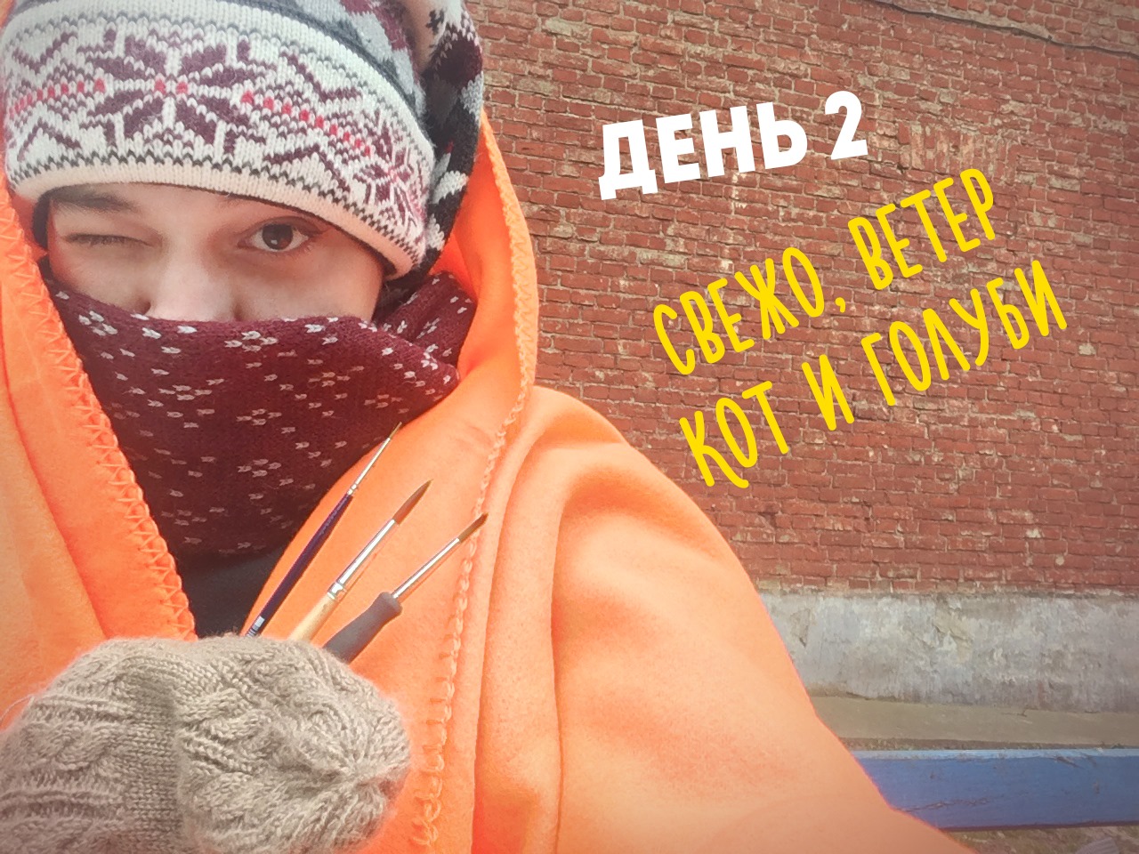 “Людзей не было зусім. Не таму, што ім нельга. Проста раён такі, асабліва ніхто не ходзіць. Затое быў кот. І дзве вароны. Не пастаянныя. Але я ўсё роўна ўключыла іх у працу”, – дзеліцца мастачка ўражаннямі ад першага дня праекта.