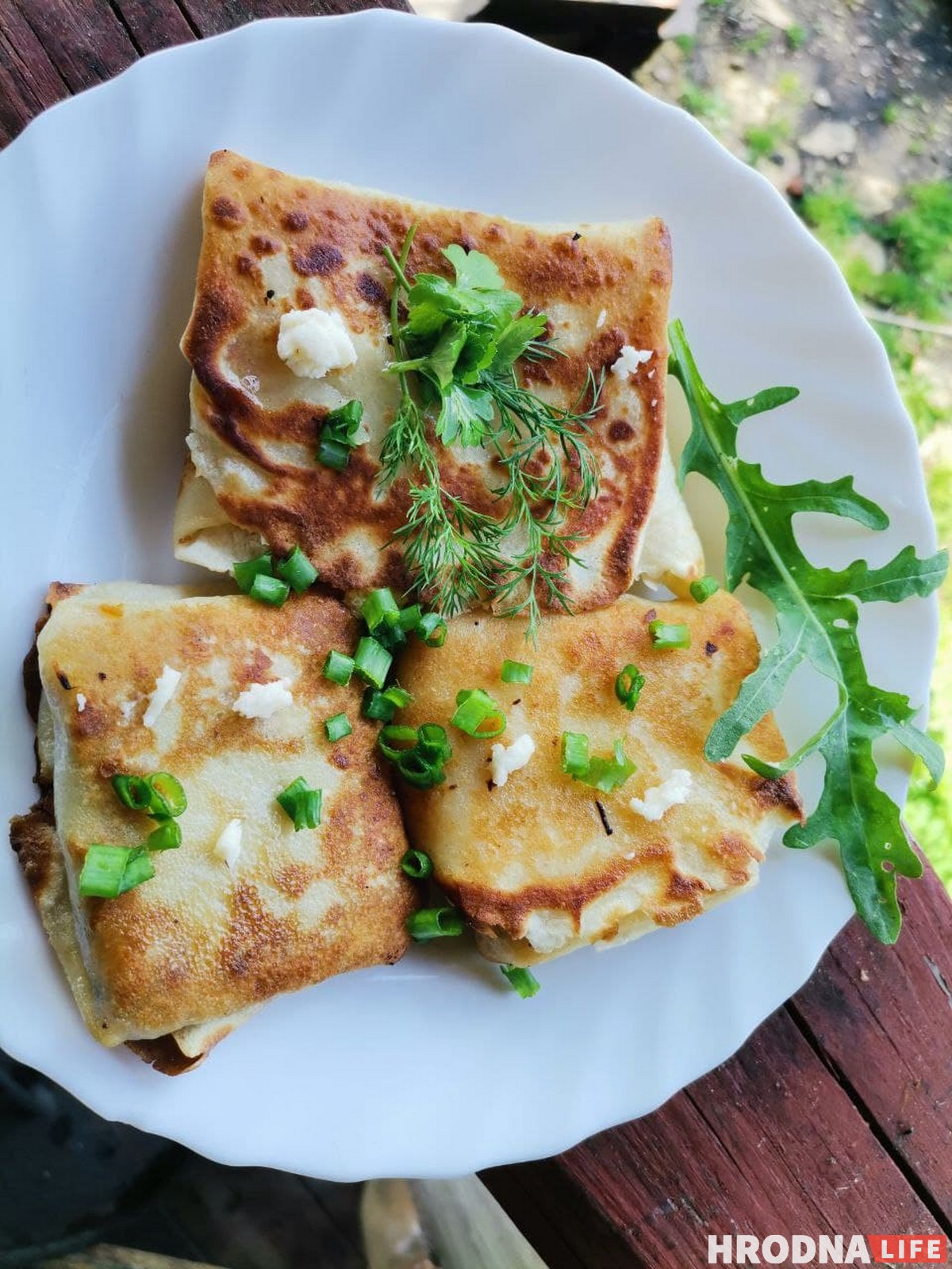 Перад падачай бліны злегку абсмажыць. Упрыгожыць талерку свежай зелянінай. Смачна есці!