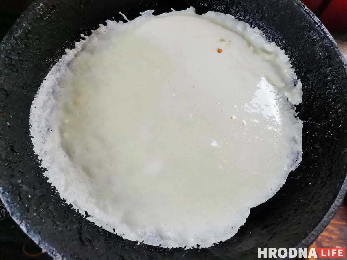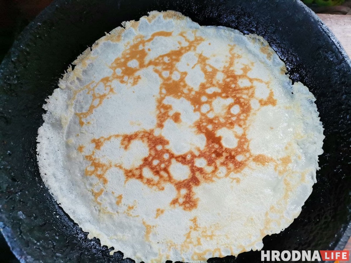 - Разаграваем патэльню, выпякаем бліны на раслінным алеі па 1-1,5 хвіліны з кожнага боку.