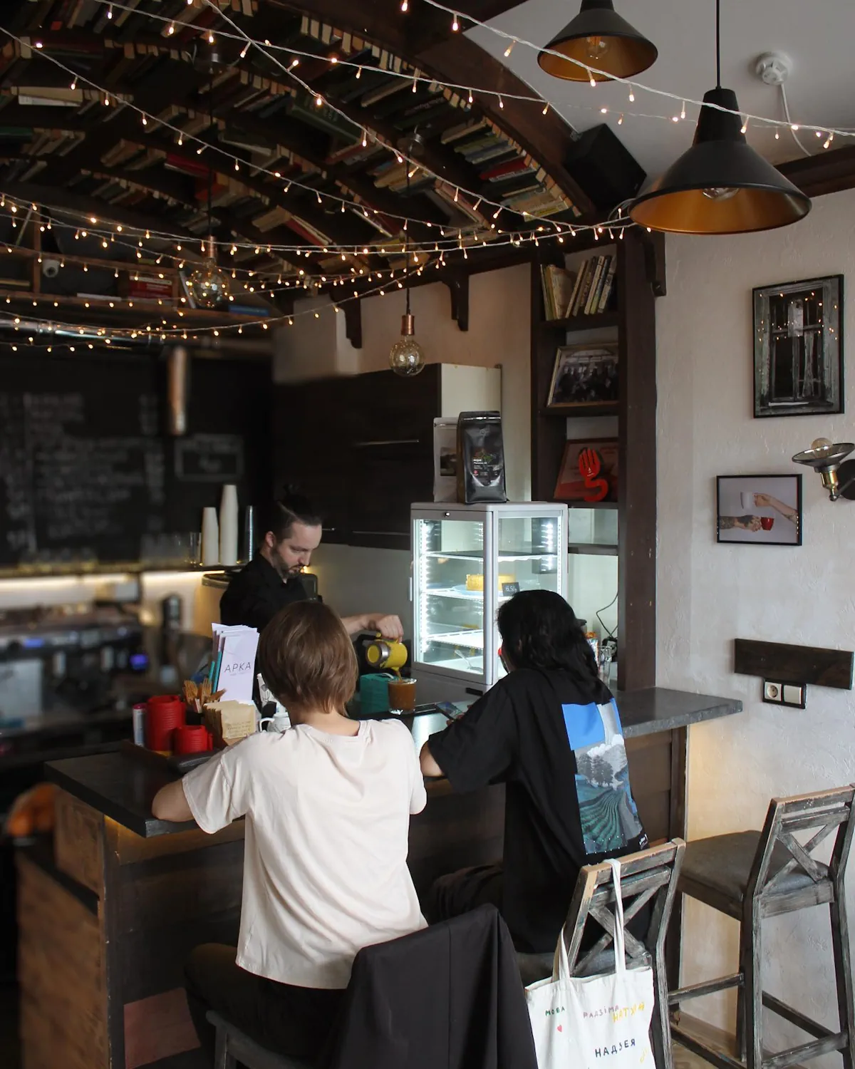 Вялікі выбар аўтарскіх напояў і кактэйляў, якія можна выпіць на зашклёнай тэрасе. Ёсць дэсерты і выпечка. З навінак – плоскія слойкі, такі адказ модным плоскім круасанам.