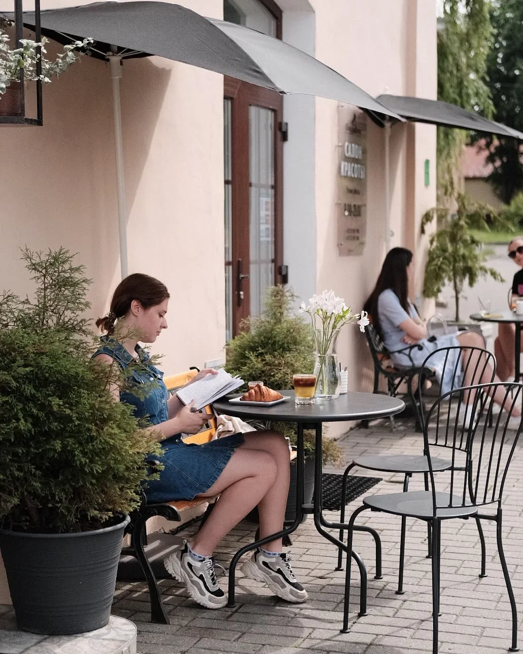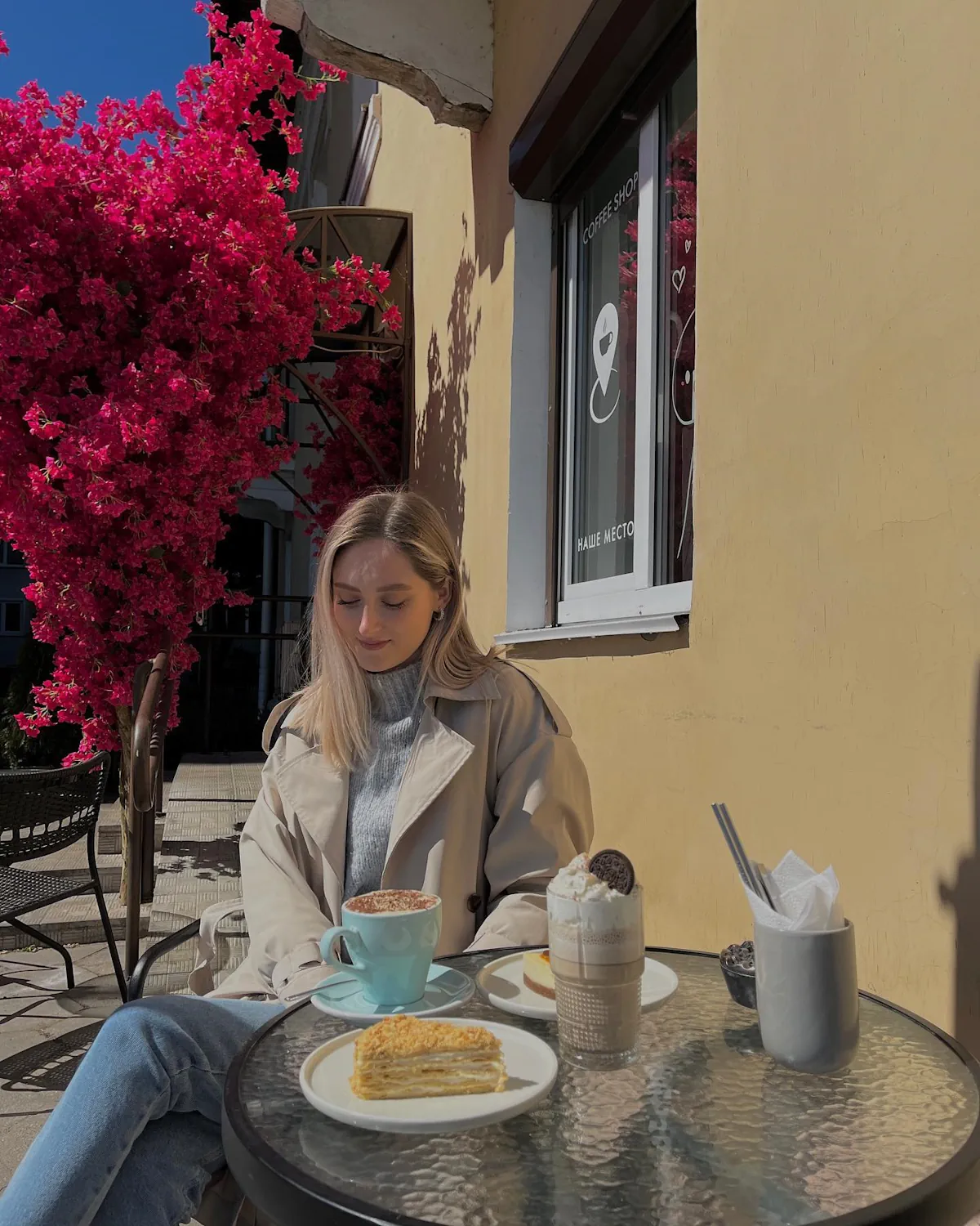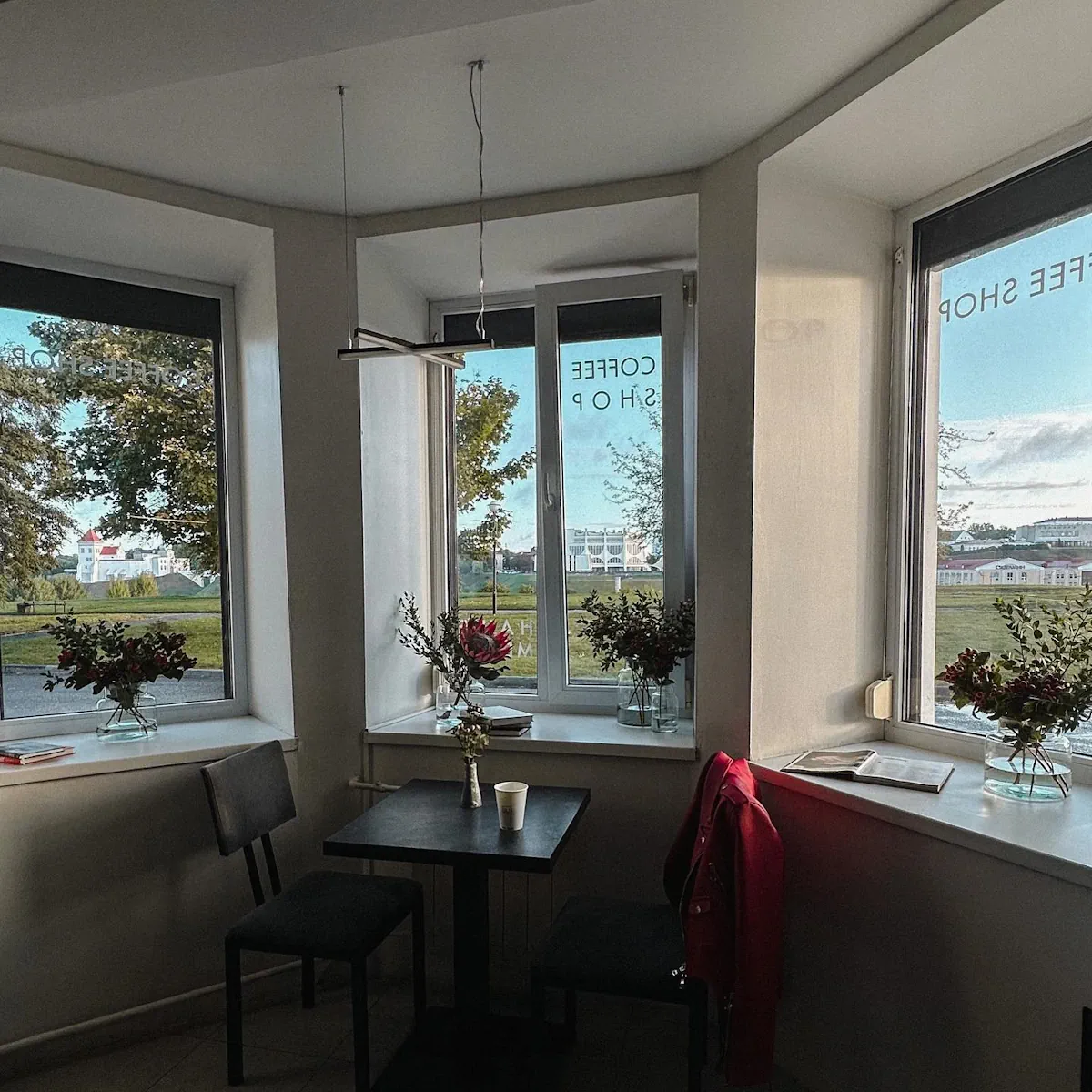 Тут вы знойдзеце аўтарскую каву і гарачы шакалад, а таксама летнія халодныя напоі і ліманады. Прапануюць таксама круасаны, тварожнікі, пірожныя і тарты. Выгляд з акна – на пешаходную вуліцу Савецкую.