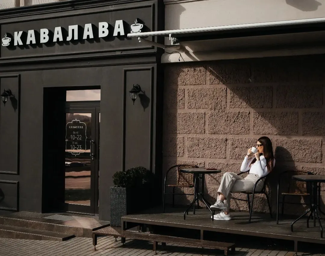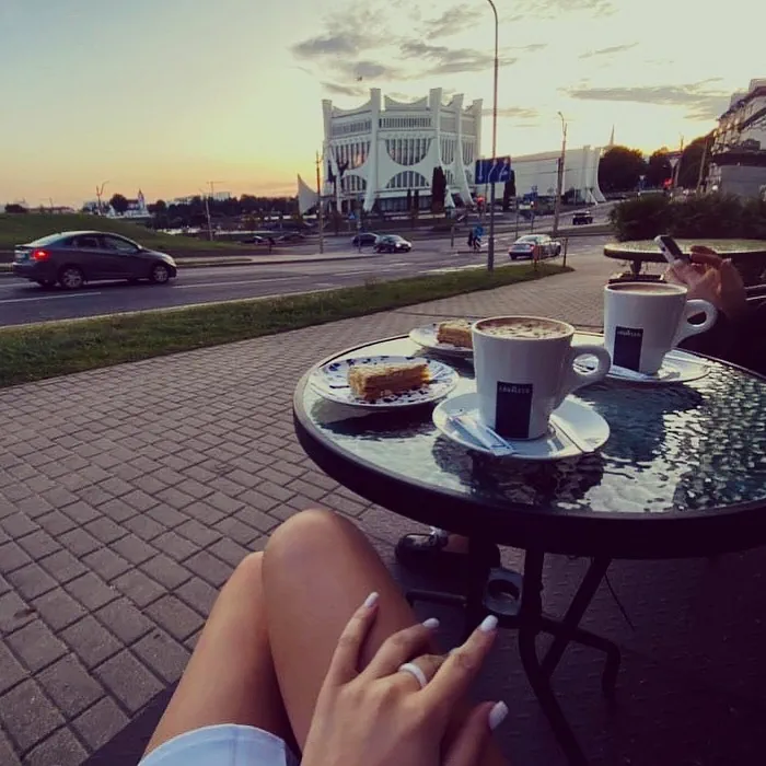 Кавярня з відам на драмтэатр і касцёл бернардынцаў. Тут падаюць каву Lavazza.