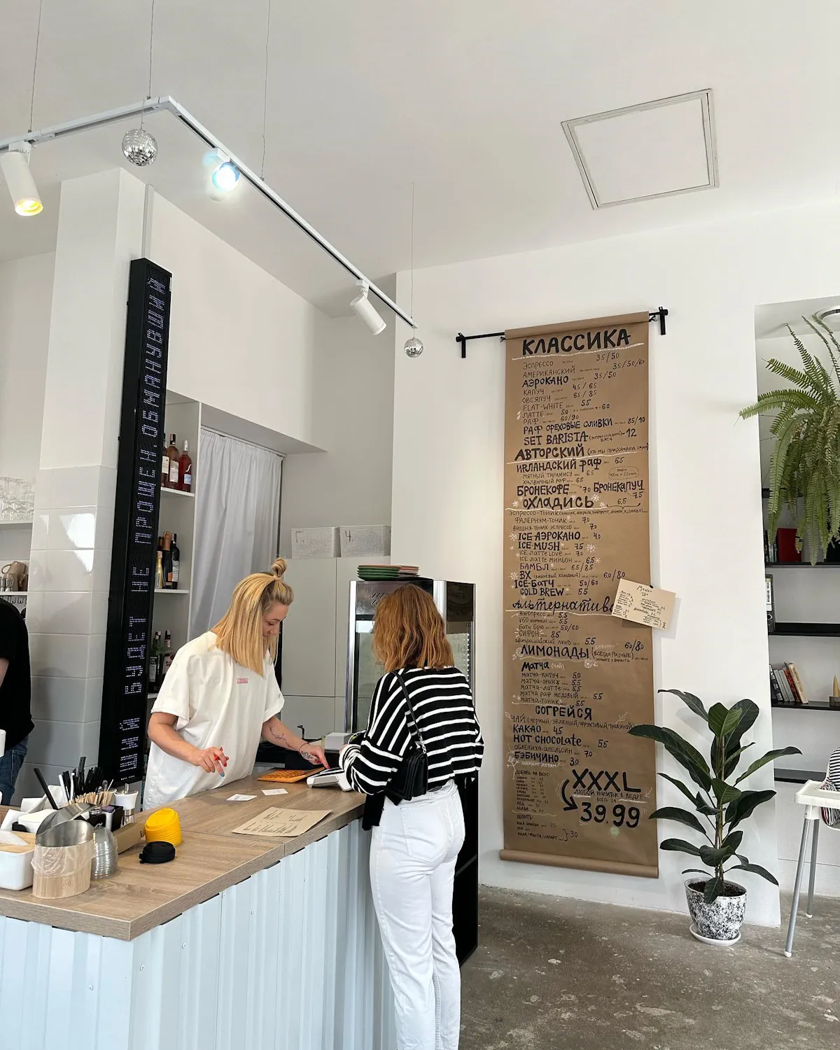 У меню, акрамя класічных напояў накшталт эспрэса, капучына ці латэ, ёсць таксама халодны мокка ці фільтр-кава ў слоіку. У сезонным летнім меню: какава-тонік, айс-рафаэла, мядовы айс-раф і іншыя напоі. Можна купіць дрып-каву для заварвання дома. Перакусіць можна круасанам або печывам.