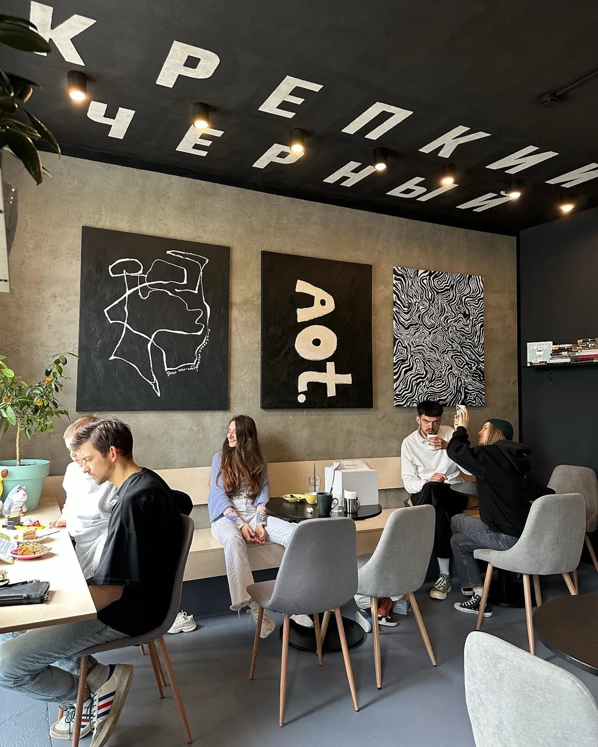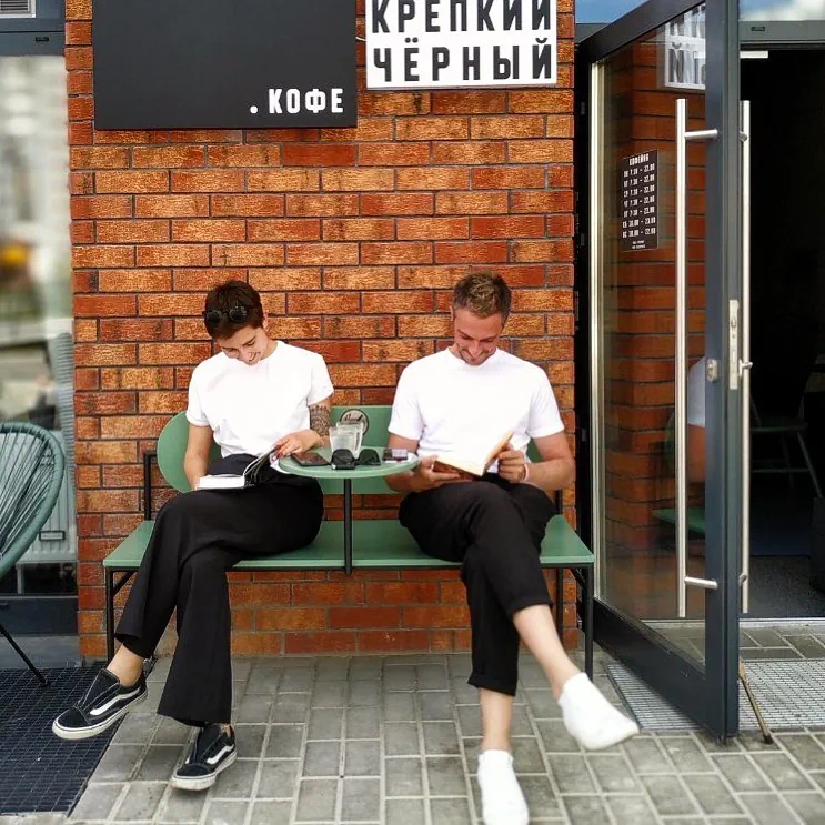 Тут – вялікая тэраса на другім паверсе “Дома рыбака”, дзе можна выпіць альтэрнатыўную або аўтарскую каву і што-небудзь перакусіць. У меню знойдзеце сырнікі, панкейкі, скрэмбл з дапаўненнямі, боулы, сэндвічы, рэшці (гэта такія швейцарскія дранікі). А яшчэ ў «Крепкий белый» можна прыходзіць з жывёламі і ёсць спецыяльнае дзіцячае меню-канструктар.