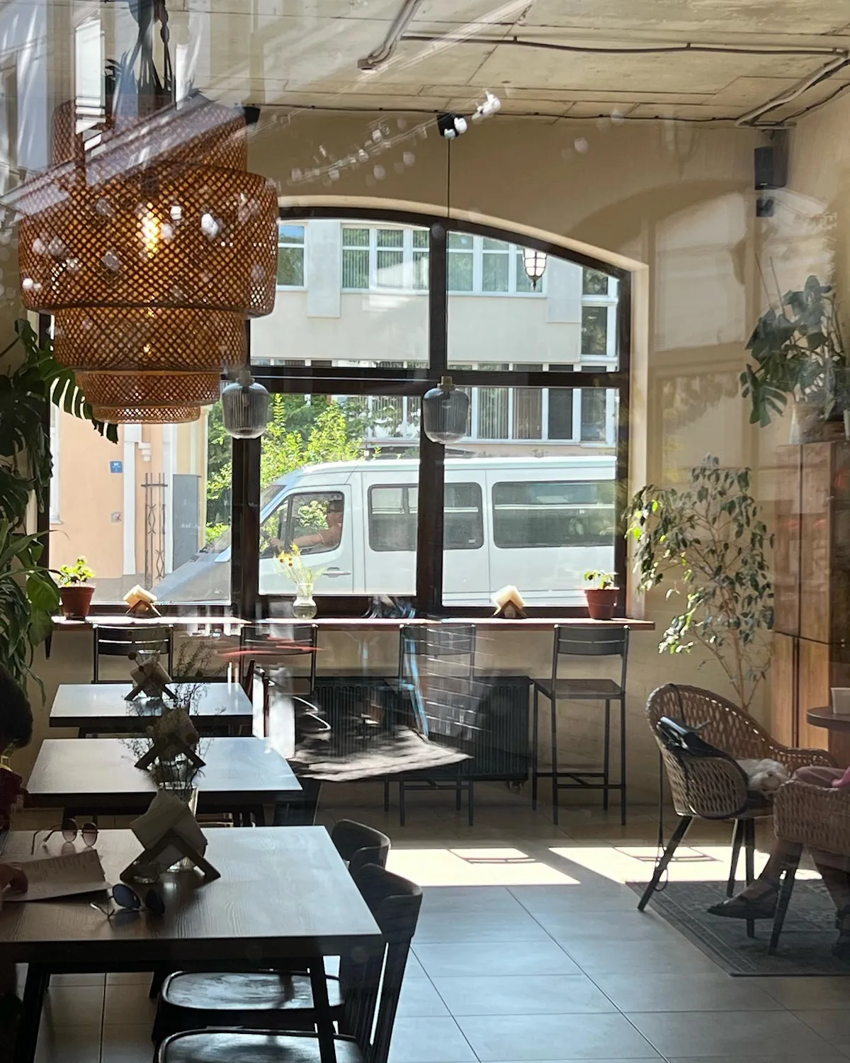 Тут падаюць самыя раннія сняданкі ў цэнтры, паесці можна з 7.30. У меню знойдзеце сырнікі, кашы, яйкі, круасаны. На абед ці вячэру можна ўзяць супы, пасты, салаты, тосты, а калі лянота выходзіць з дому, гэта ўсё можна замовіць праз Яндэкс.Дастаўку. Ёсць сезоннае меню кактэйляў і халоднай кавы, вінная карта, а таксама дэсерты. Кафэ pet-friendly, на вуліцы ёсць летка.
