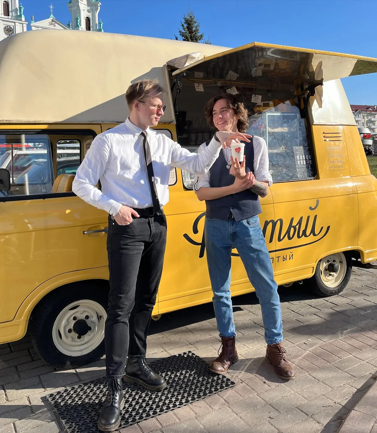 Яшчэ адна папулярная жоўтая машына ў Гродне – гэта кавярня-фудтрак на Савецкай плошчы. Яе зрабілі з пераабсталяванага ГДРаўскага мікрааўтобуса Barkas B1000. Месца называе сябе першай у Гродне кавярняй на колах і ўжо даўно і трывала стала кропкай прыцягнення гараджан і турыстаў, якія гуляюць у цэнтры.