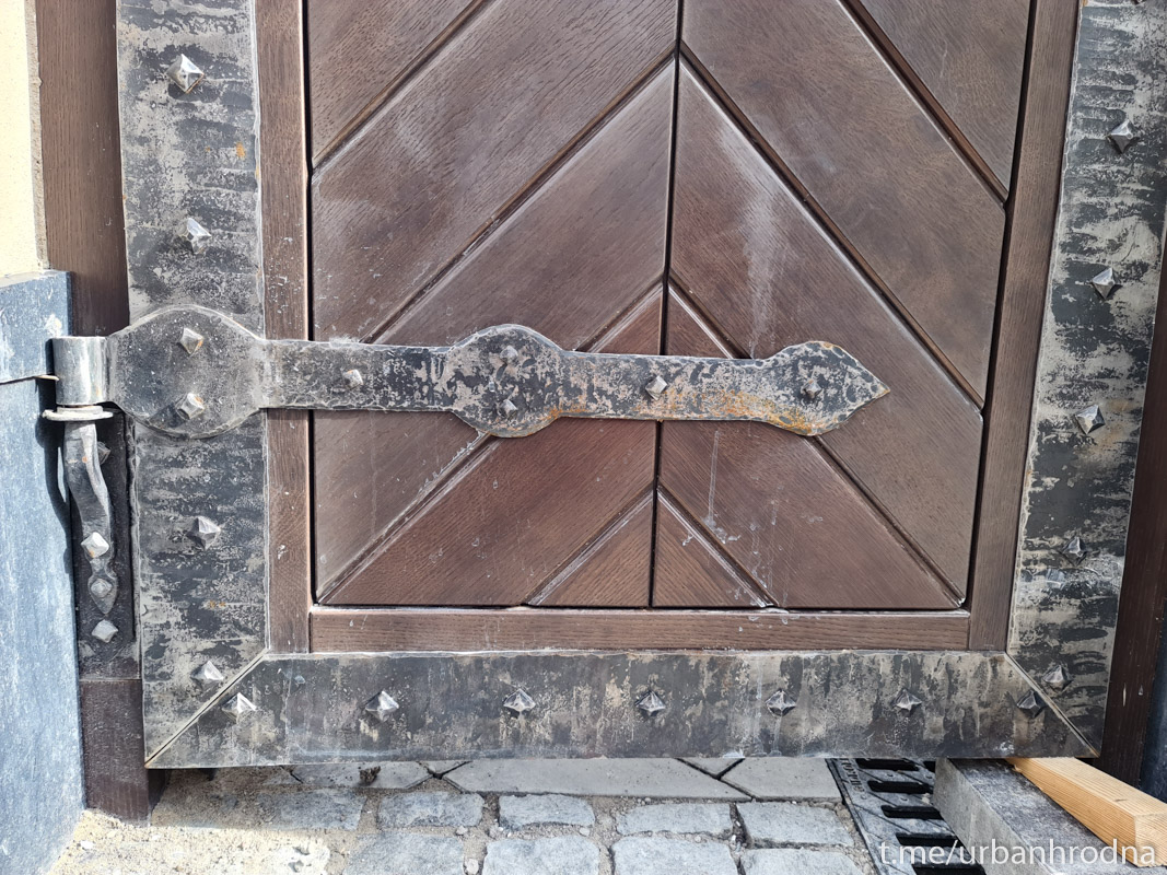 - Дах з дахоўкі, дубовыя брамы і ручная работа