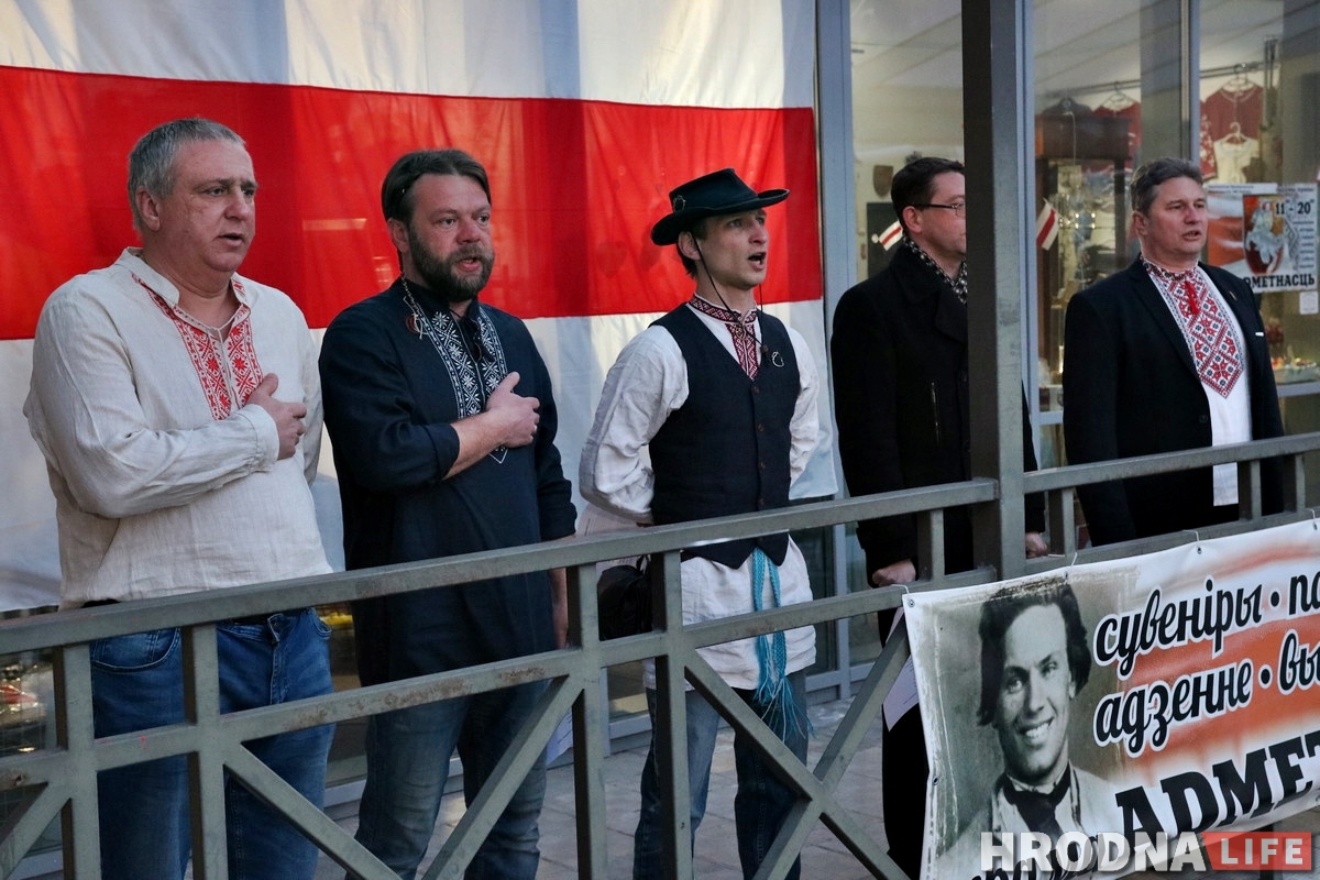 Раніцай 25 сакавіка грамадскія актывісты ў дворыку на Кірава,3 зачыталі ўстаўную грамату Рады Беларускай Народнай Рэспублікі. З гэтага мерапрыемства ў Гродне пачалося святкаванне Дня Волі.