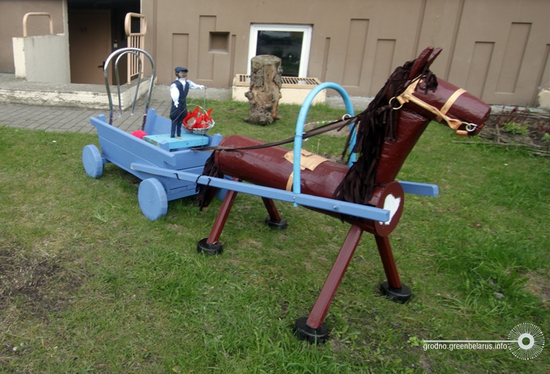 Агра-стайл. Відаць, каб студэнты, будучыя аграрыі, натхняліся гэткім ландшафтным дызайнам. Зрэшты, у такім духу робяцца і кампазіцыі з саламяных кубоў на нашых родных палях.