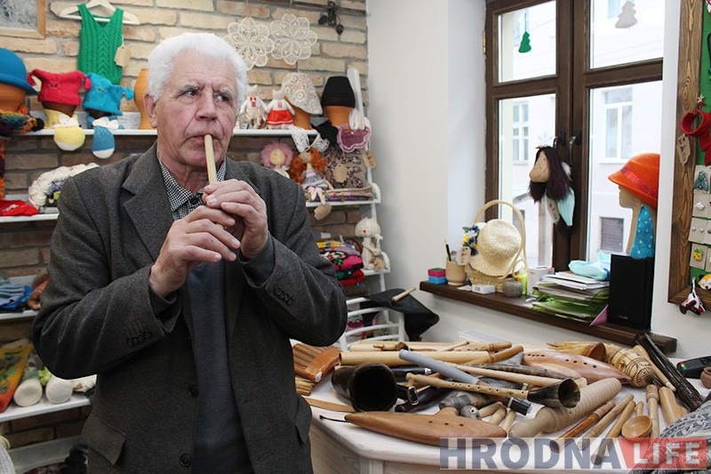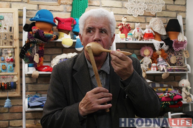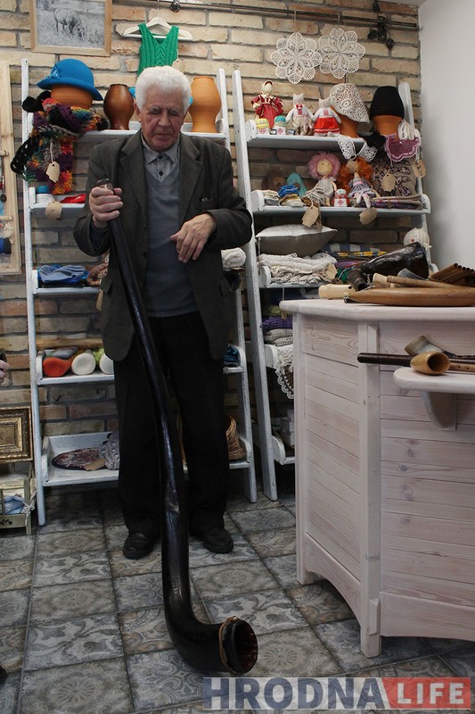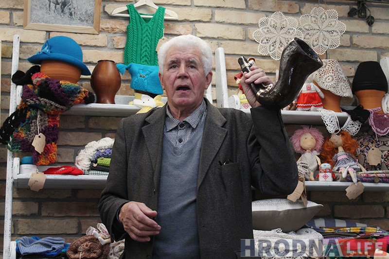 Майстар можа граць і папулярныя мелодыі. І паказвае наведвальнікам “душашчыпальную” мелодыю, прысвечаную падзеям ва Украіне. А затым паказвае рог падобны да апісанага ў паэме “Пан Тадэвуш” і дзеліцца назіраннямі: