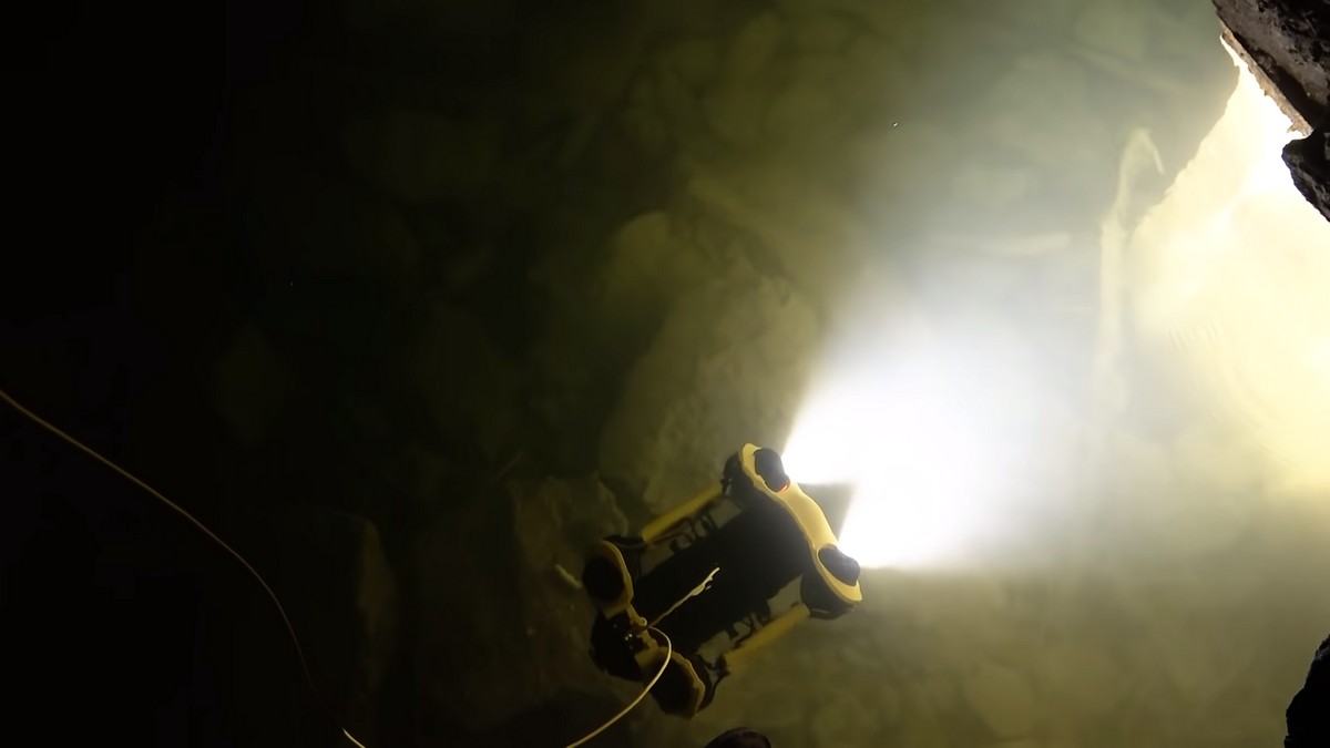 Мэтай каманды было знайсці правал у зямлі, напоўнены вадой, і вывучыць падводны тунэль. Здымкі вялі падводным дронам.