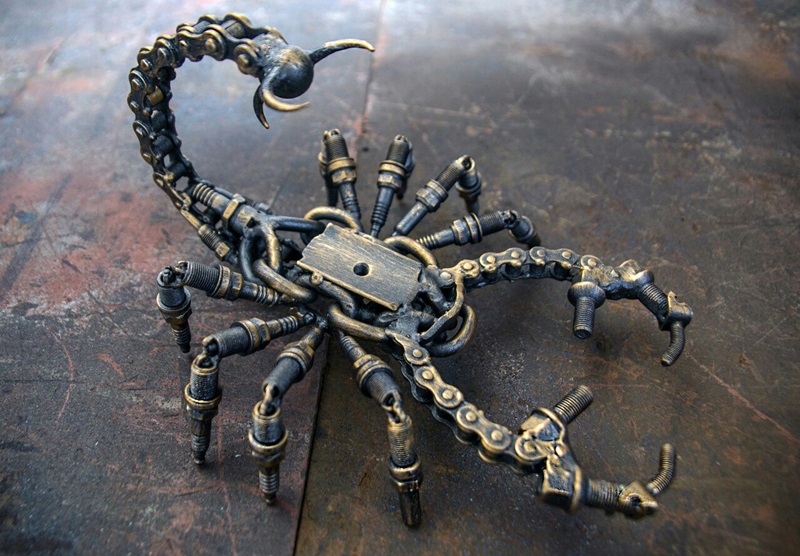 Зараз у калекцыі Уладзіміра больш за 15 незвычайных работ. Гэта матацыклы, машынкі, скарпіёны, падсвечнікі У планах – дарабіць сваю майстэрню і арганізаваць уласную выставу.
