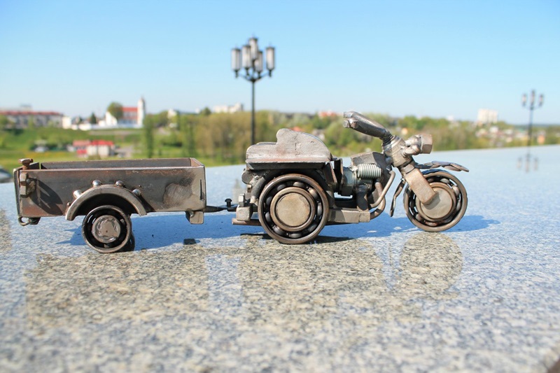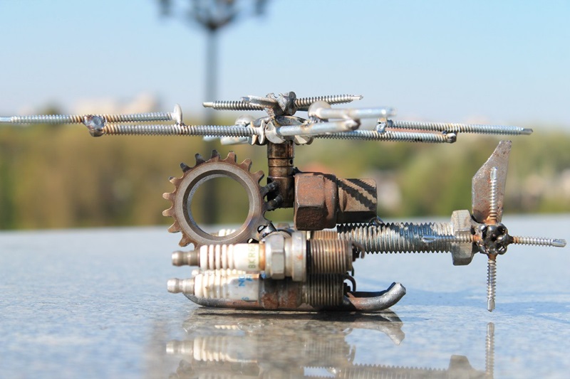 У ход ідзе ўсё, што паддаецца зварцы: гайкі, балты, падшыпнікі, свечкі, шайбы і іншыя адпрацаваныя аўтазапчасткі, кавалкі бляхі. З іх з’яўляюцца дзіўныя машыны, матацыклы, квадрацыклы, верталёты і іншыя мадэлі.
