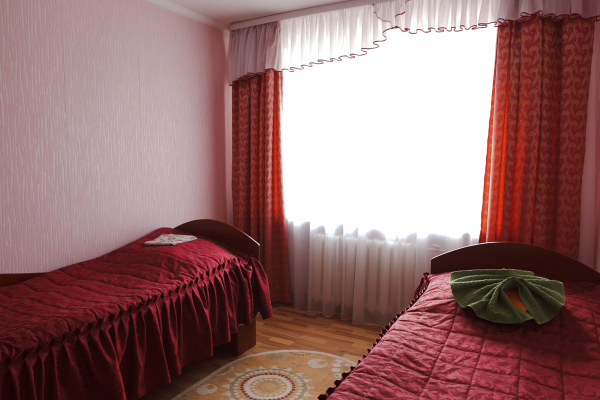 Месца ў нумары з двума аднаспальнымі ложкамі каштуе ад 52 рублёў, сняданак у кошт не ўваходзіць.