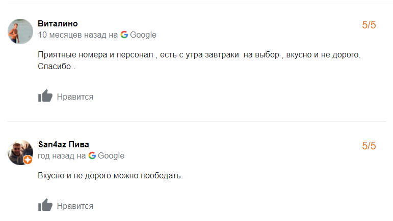 Сярэдняя адзнака гасцініцы ў Google – 4,5 з 5.