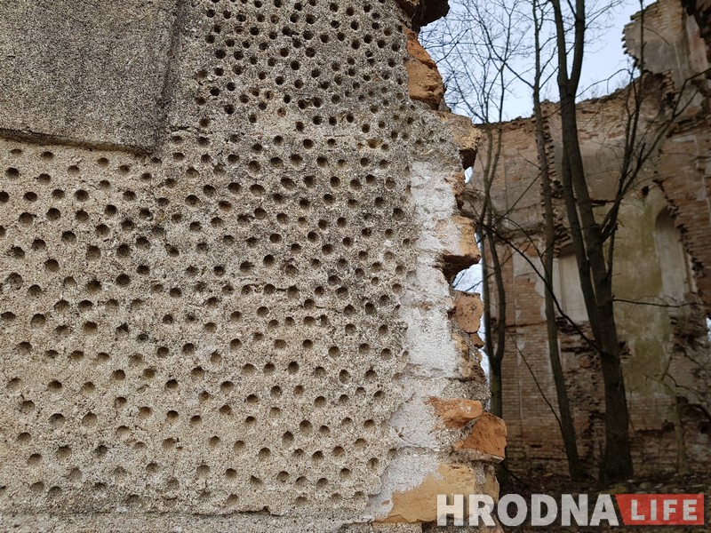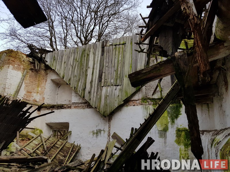 “Гэта ж без даху стаіць якую пару, і не размывае ні дождж, ні снег, трымаецца і трымаецца. Некалі казалі, што хтосьці печ будаваў і хацеў залезці цагліны ўзяць. Дык кажуць, не вырваць! На чым яно там зроблена, што не руйнуецца? А хто той дах разбамбіў, ці гэта якія немцы, ці хто… Гэта ж усё было цэлым калісьці. 60 гадоў я тут жыву. І яно ўжо ўвесь час на маёй памяці, і яшчэ да мяне так было – без даху”, – расказвае Марыя.