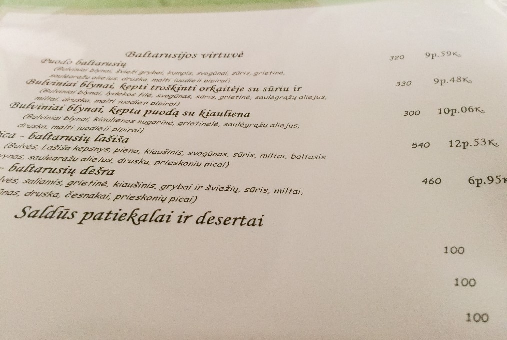 Некаторыя кафэ і рэстараны гатовыя да прыезду літоўскіх турыстаў і прапануюць меню на літоўскай мове.