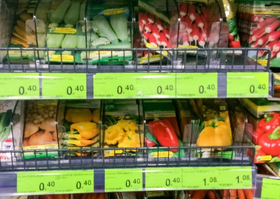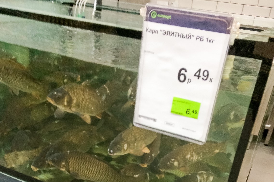 У крамах Гродна кілаграм яблыкаў каштуе 0,6-1,2 еўра, бананаў – 0,8 еўра, ківі – 1,8 еўра, дзясятак яек – 0,9 еўра, малако – ад 0,5 еўра, бульба – ад 0, 2 еўра, жывыя карпы – 3,25 еўра за кг.
