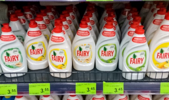 Зубная паста ў Беларусі каштуе ад 0,45 еўра, але Colgate можа каштаваць і даражэй 2 еўра. Сродак для мыцця посуду Fairy – ад 1,72 еўра.